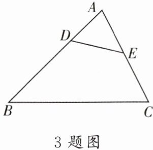 3. 如图,D,E分别是△ABC边AB,AC上的点,∠ADE= ∠ACB,若AD= 2,DB= 7,EC= 3,则AE的长是(