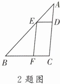 2. 如图,在△ABC中,DE//BC分别交AC,AB于点D,E,EF//AC交BC于点F,$\frac{AE}{BE}= \frac{2}{5}$,BF= 8,则DE的长为(