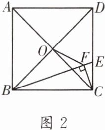 【结论运用】如图2,正方形ABCD的边长为6,点O是对角线AC,BD的交点,点E在CD上,过点C作$CF\perp BE$,垂足为F,连接OF.