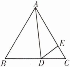 3. 如图,在等边三角形 ABC 中,D 为 BC 边上一点,E 为 AC 边上一点,∠ADE= 60°.