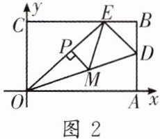(2)如图2,若$OE上有一动点P$(不与点$O$,$E$重合)从点$O$出发,以每秒1个单位长度的速度沿$OE的方向向点E$匀速运动,设运动时间为$t秒(0 < t < 5)$,过点$P作PM\perp OE$,交$OD于点M$,连接$ME$,直接写出当$t$为何值时,以点$P$,$M$,$E为顶点的三角形与\triangle ODA$相似.