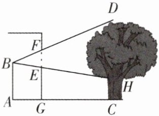 15. 如图,小王为测得学校操场上小树$CD$的高,他站在教室里的$A$点处,从教室的窗口望出去,恰好能看见小树的整个树冠$HD$. 经测量,窗口高$EF = 1.4\ m$,树干高$CH= 1.2\ m$,$A$,$C$两点在同一水平线上,$A点距墙根G点1.6\ m$,$C点距墙根G点4.8\ m$,且$A$,$G$,$C$三点在同一直线上. 请根据上面的信息,帮小王计算出小树$CD$的高.