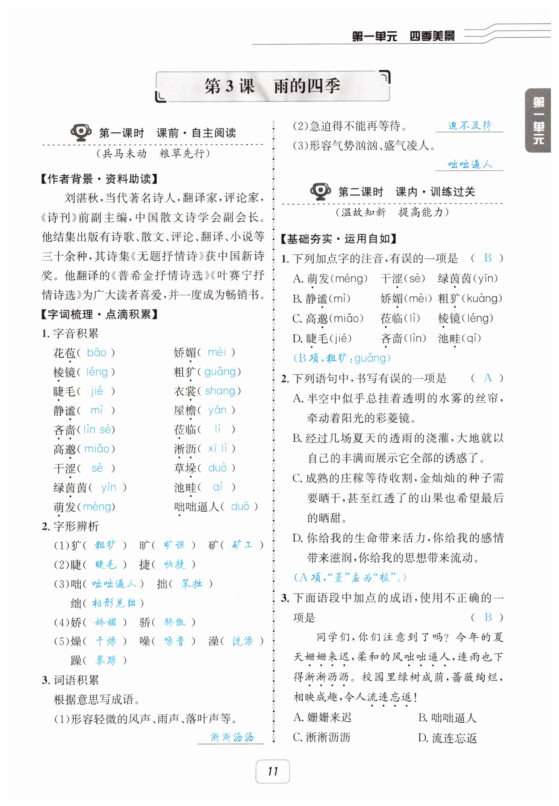 注:目前有些书本章节名称可能整理的还不是很完善,但都是按照顺序排列的,请同学们按照顺序仔细查找。练习册 2025年名校金典课堂七年级语文上册人教版 答案主要是用来给同学们做完题方便对答案用的,请勿直接抄袭。