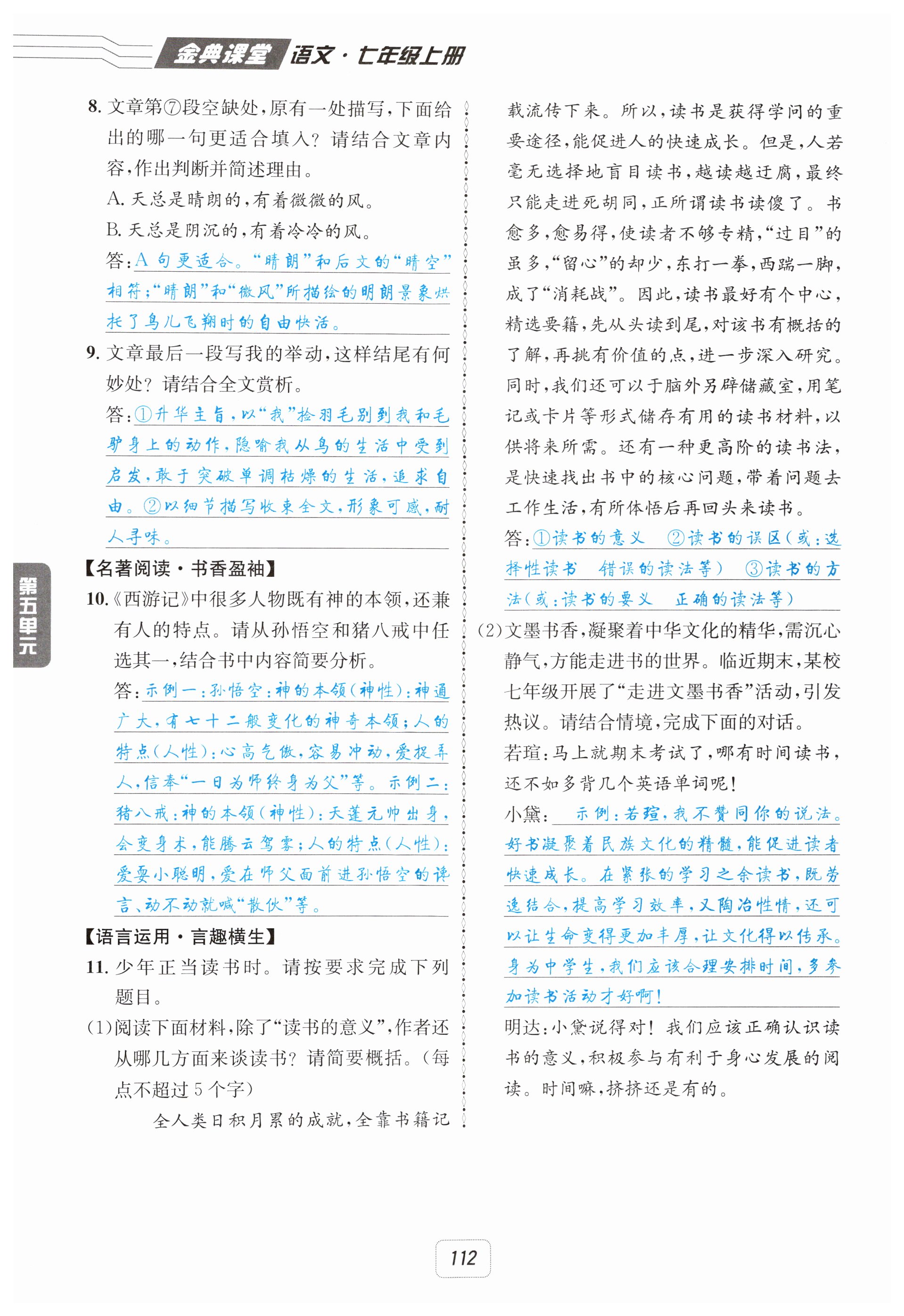 注:目前有些书本章节名称可能整理的还不是很完善,但都是按照顺序排列的,请同学们按照顺序仔细查找。练习册 2025年名校金典课堂七年级语文上册人教版 答案主要是用来给同学们做完题方便对答案用的,请勿直接抄袭。