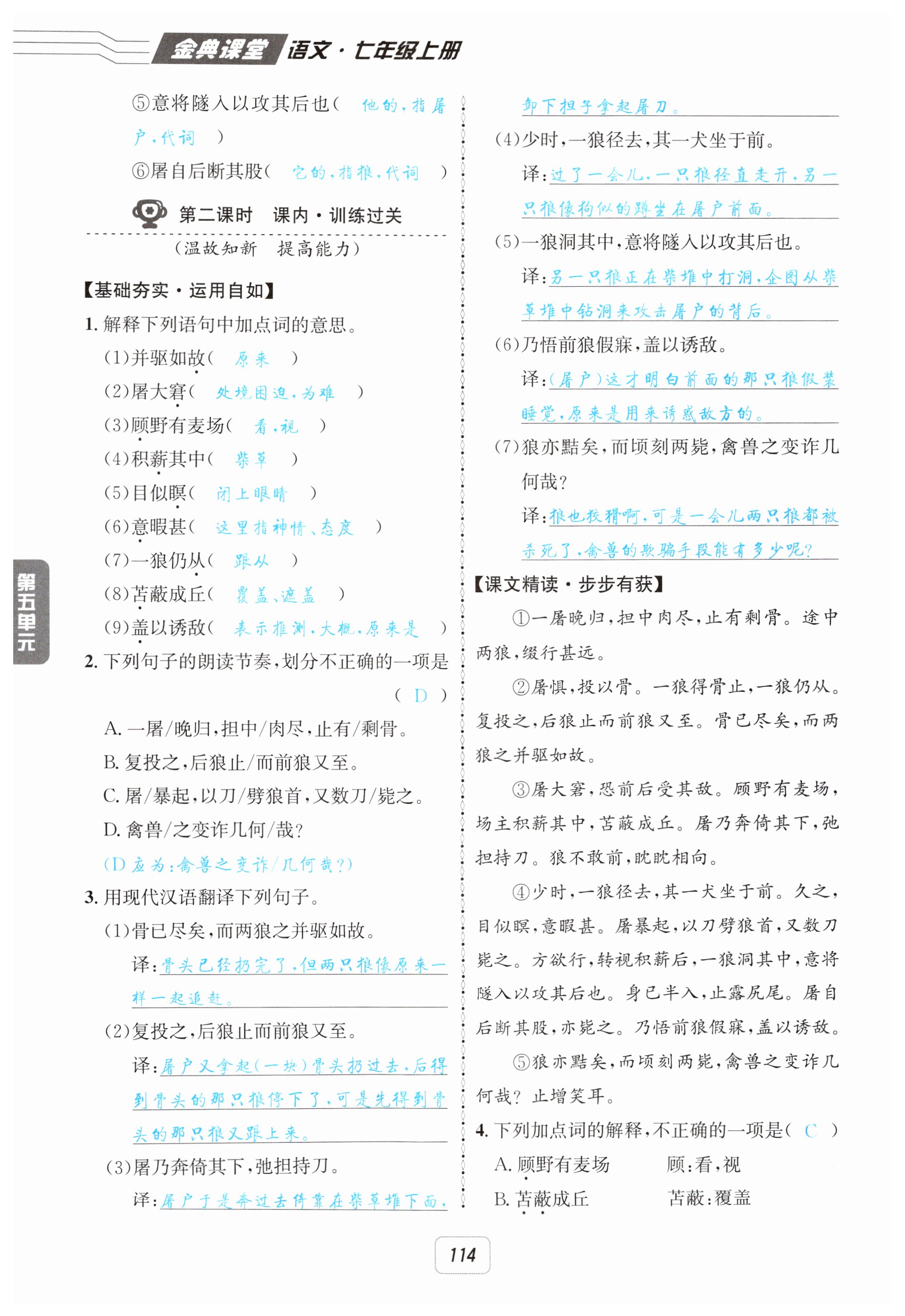 注:目前有些书本章节名称可能整理的还不是很完善,但都是按照顺序排列的,请同学们按照顺序仔细查找。练习册 2025年名校金典课堂七年级语文上册人教版 答案主要是用来给同学们做完题方便对答案用的,请勿直接抄袭。