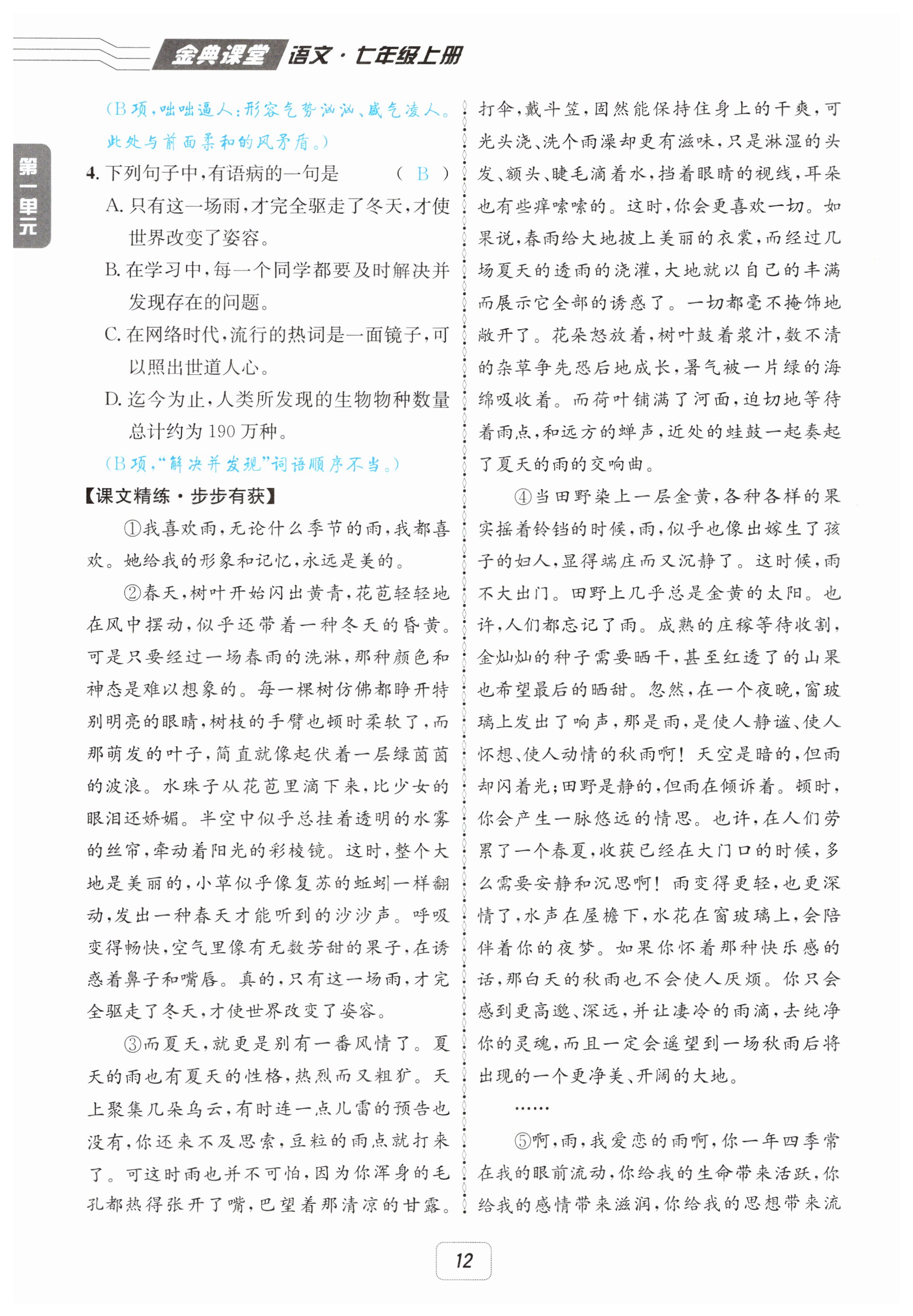 注:目前有些书本章节名称可能整理的还不是很完善,但都是按照顺序排列的,请同学们按照顺序仔细查找。练习册 2025年名校金典课堂七年级语文上册人教版 答案主要是用来给同学们做完题方便对答案用的,请勿直接抄袭。
