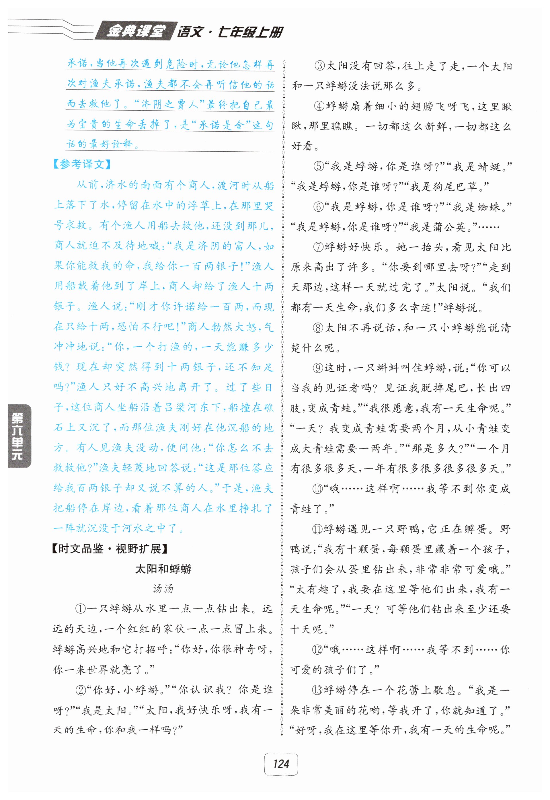 注:目前有些书本章节名称可能整理的还不是很完善,但都是按照顺序排列的,请同学们按照顺序仔细查找。练习册 2025年名校金典课堂七年级语文上册人教版 答案主要是用来给同学们做完题方便对答案用的,请勿直接抄袭。