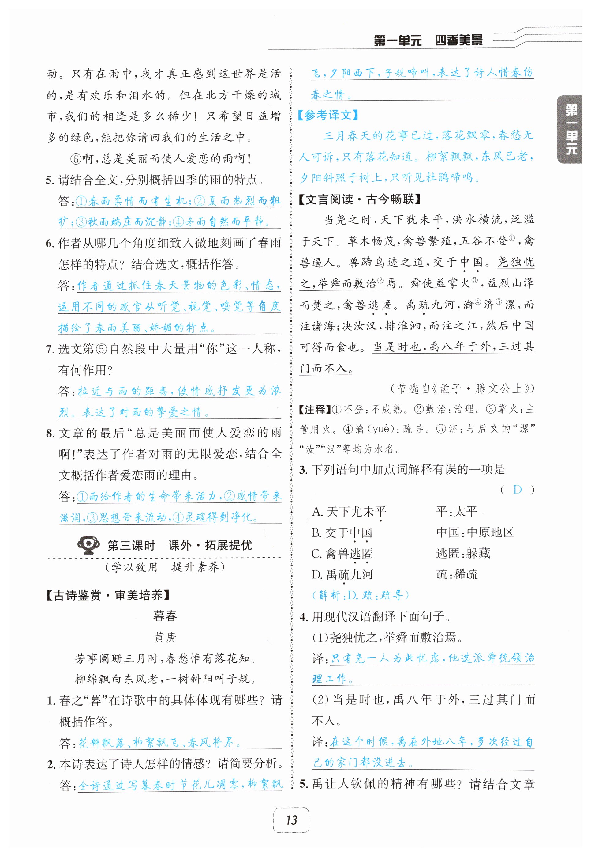 注:目前有些书本章节名称可能整理的还不是很完善,但都是按照顺序排列的,请同学们按照顺序仔细查找。练习册 2025年名校金典课堂七年级语文上册人教版 答案主要是用来给同学们做完题方便对答案用的,请勿直接抄袭。