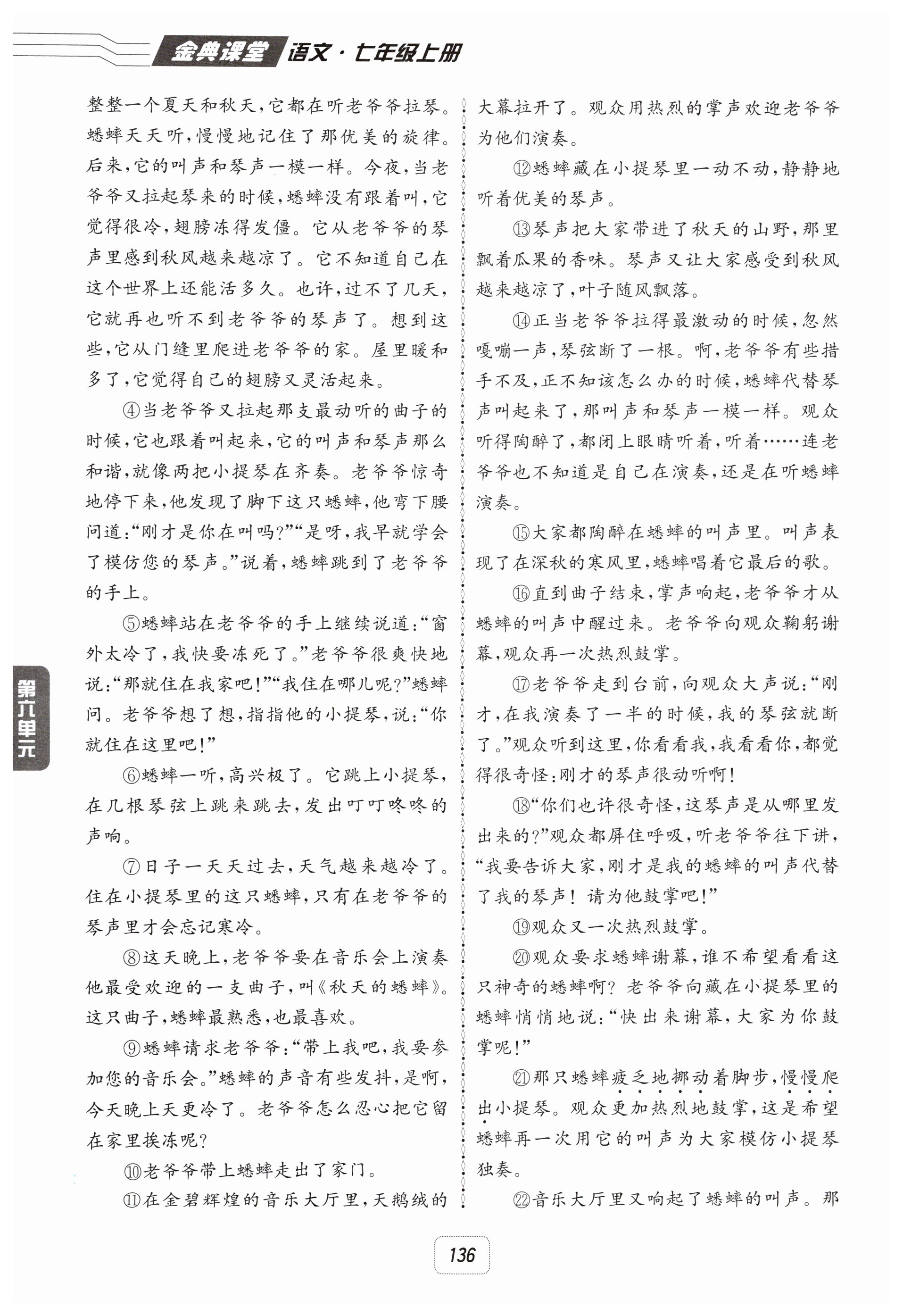 注:目前有些书本章节名称可能整理的还不是很完善,但都是按照顺序排列的,请同学们按照顺序仔细查找。练习册 2025年名校金典课堂七年级语文上册人教版 答案主要是用来给同学们做完题方便对答案用的,请勿直接抄袭。