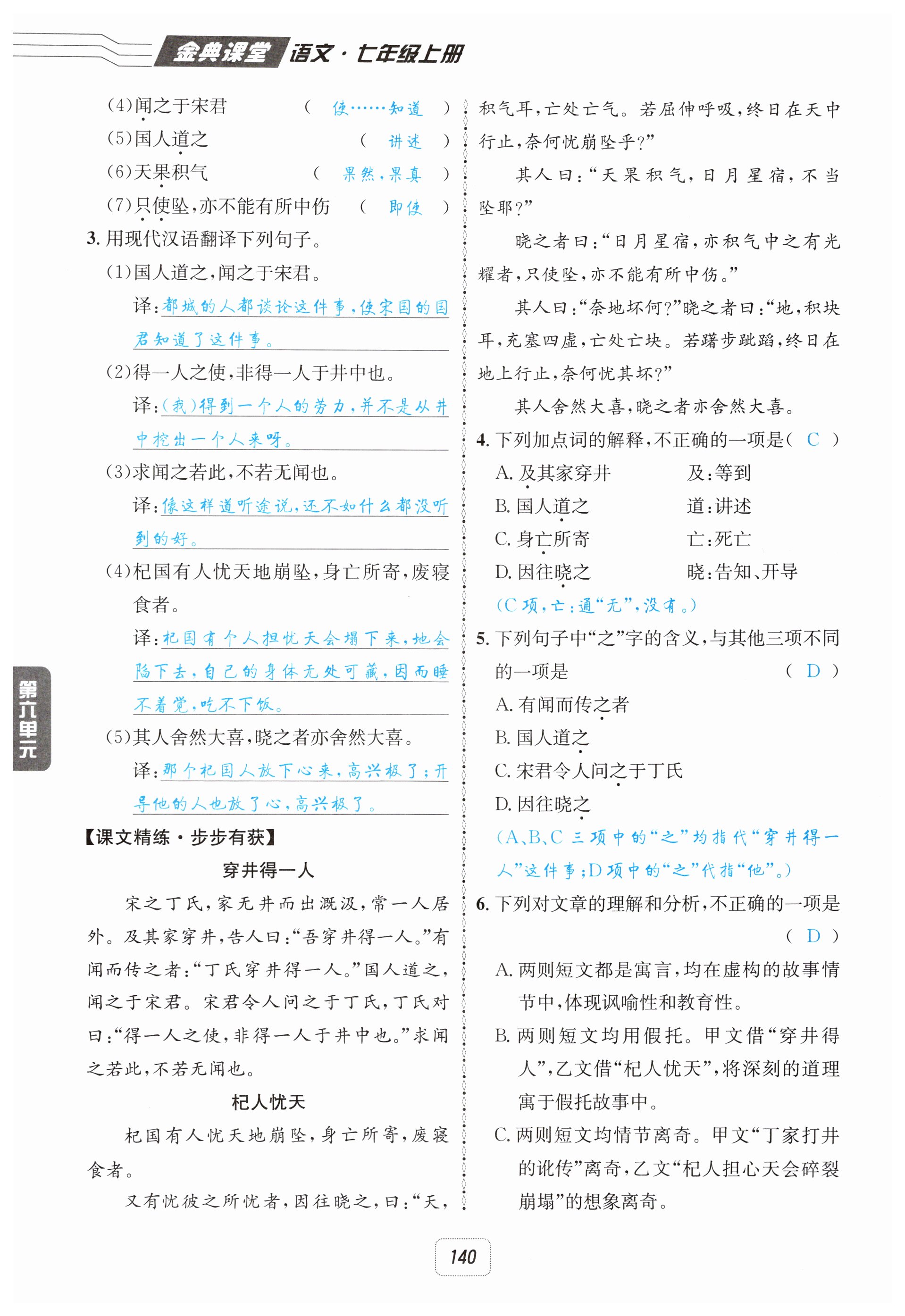 注:目前有些书本章节名称可能整理的还不是很完善,但都是按照顺序排列的,请同学们按照顺序仔细查找。练习册 2025年名校金典课堂七年级语文上册人教版 答案主要是用来给同学们做完题方便对答案用的,请勿直接抄袭。