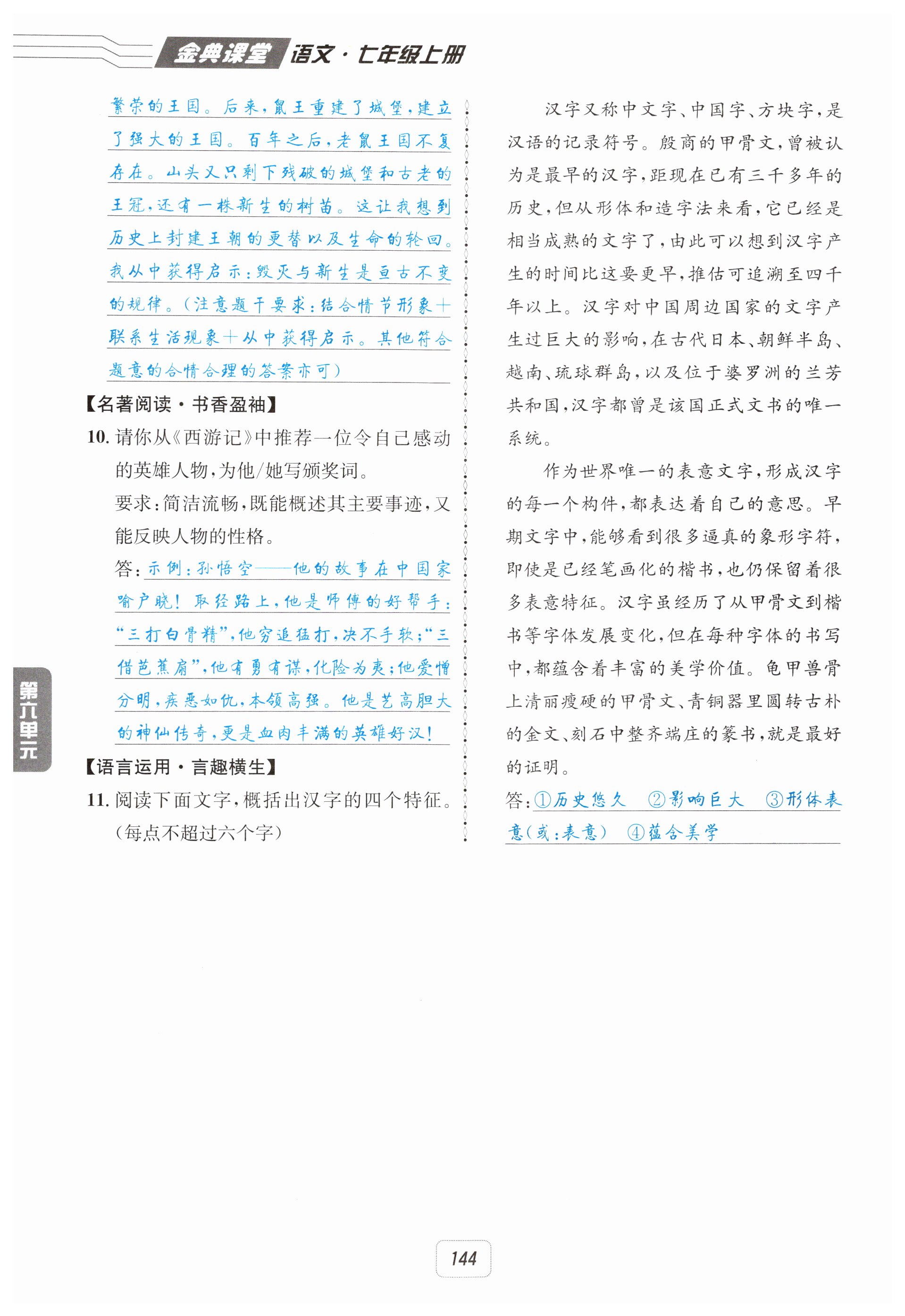 注:目前有些书本章节名称可能整理的还不是很完善,但都是按照顺序排列的,请同学们按照顺序仔细查找。练习册 2025年名校金典课堂七年级语文上册人教版 答案主要是用来给同学们做完题方便对答案用的,请勿直接抄袭。