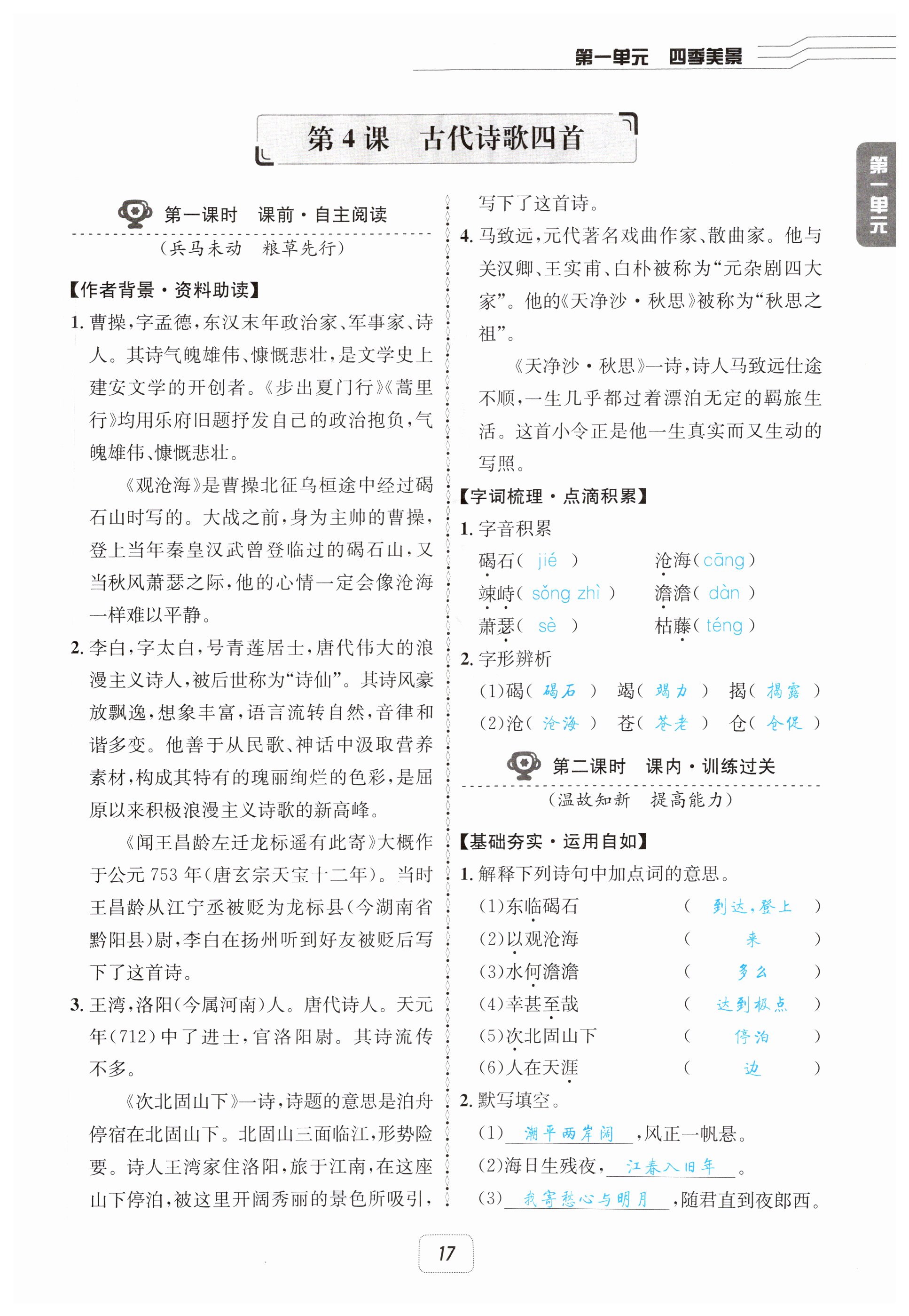 注:目前有些书本章节名称可能整理的还不是很完善,但都是按照顺序排列的,请同学们按照顺序仔细查找。练习册 2025年名校金典课堂七年级语文上册人教版 答案主要是用来给同学们做完题方便对答案用的,请勿直接抄袭。