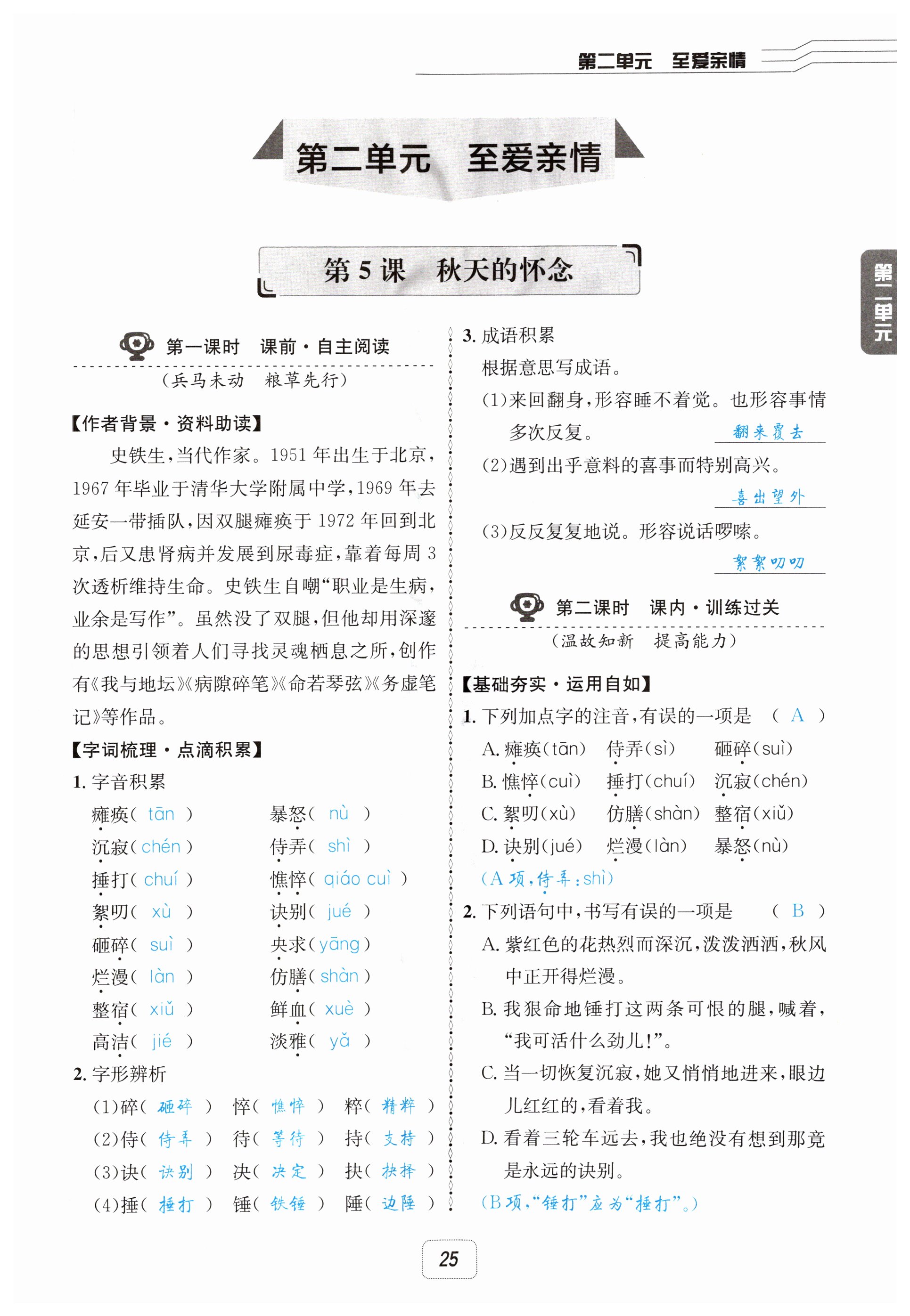 注:目前有些书本章节名称可能整理的还不是很完善,但都是按照顺序排列的,请同学们按照顺序仔细查找。练习册 2025年名校金典课堂七年级语文上册人教版 答案主要是用来给同学们做完题方便对答案用的,请勿直接抄袭。