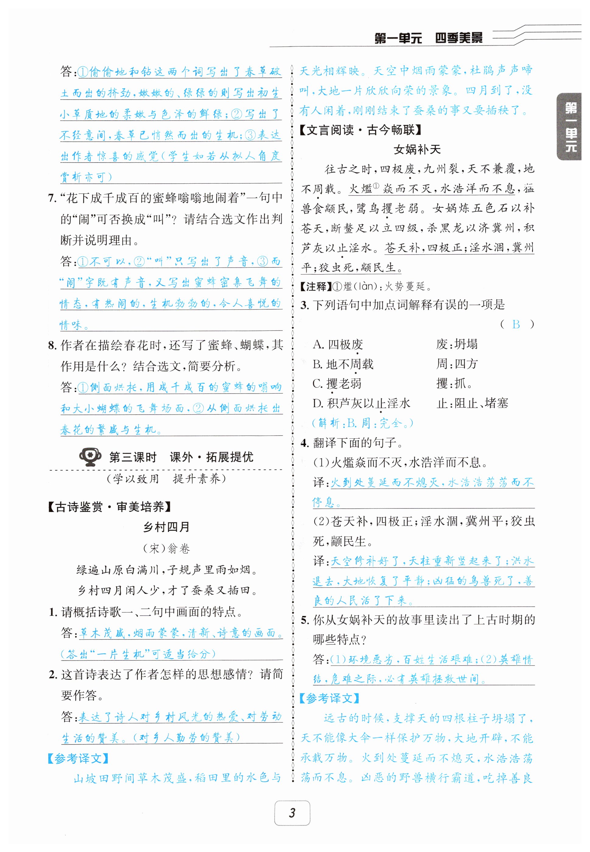 注:目前有些书本章节名称可能整理的还不是很完善,但都是按照顺序排列的,请同学们按照顺序仔细查找。练习册 2025年名校金典课堂七年级语文上册人教版 答案主要是用来给同学们做完题方便对答案用的,请勿直接抄袭。