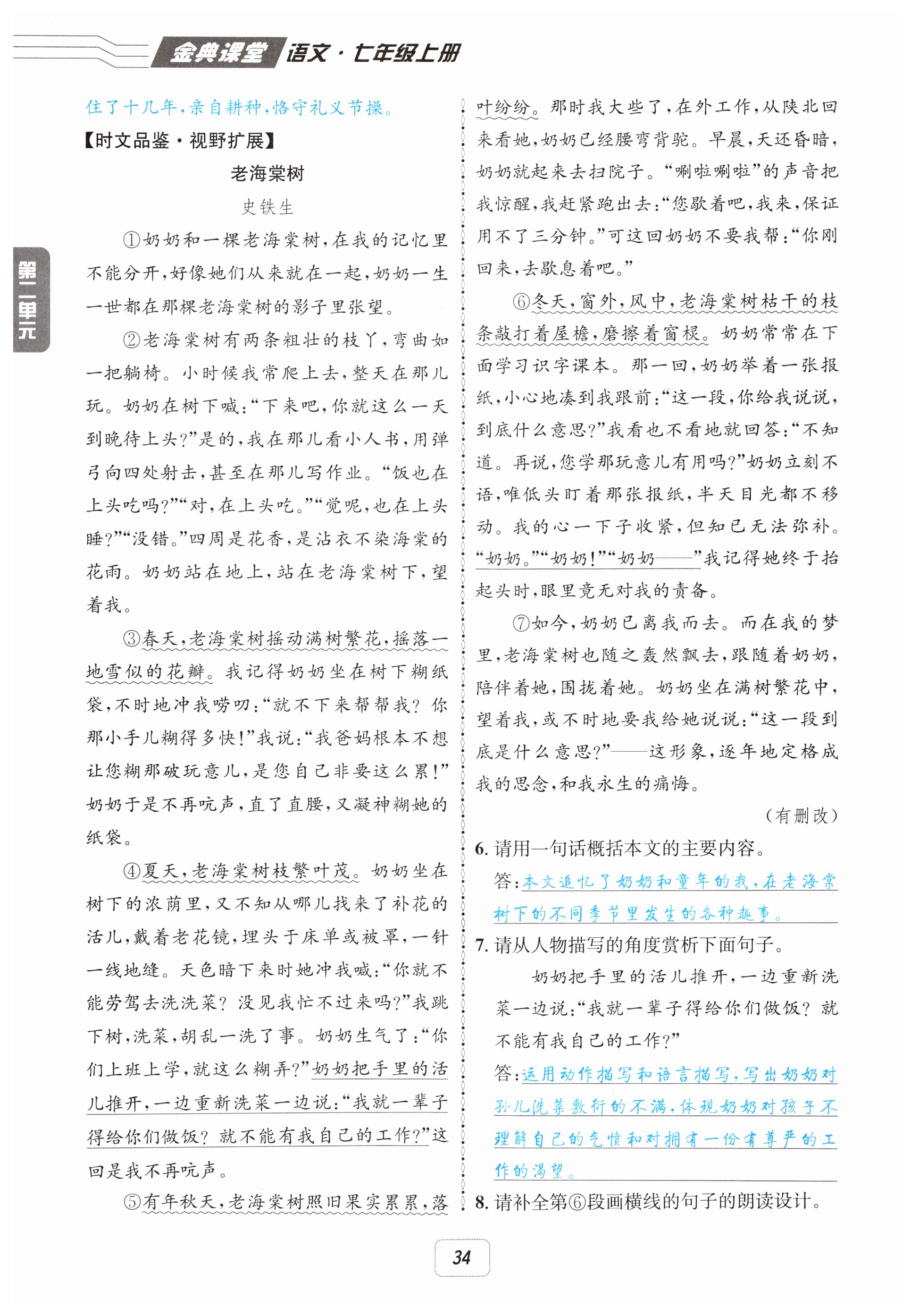 注:目前有些书本章节名称可能整理的还不是很完善,但都是按照顺序排列的,请同学们按照顺序仔细查找。练习册 2025年名校金典课堂七年级语文上册人教版 答案主要是用来给同学们做完题方便对答案用的,请勿直接抄袭。