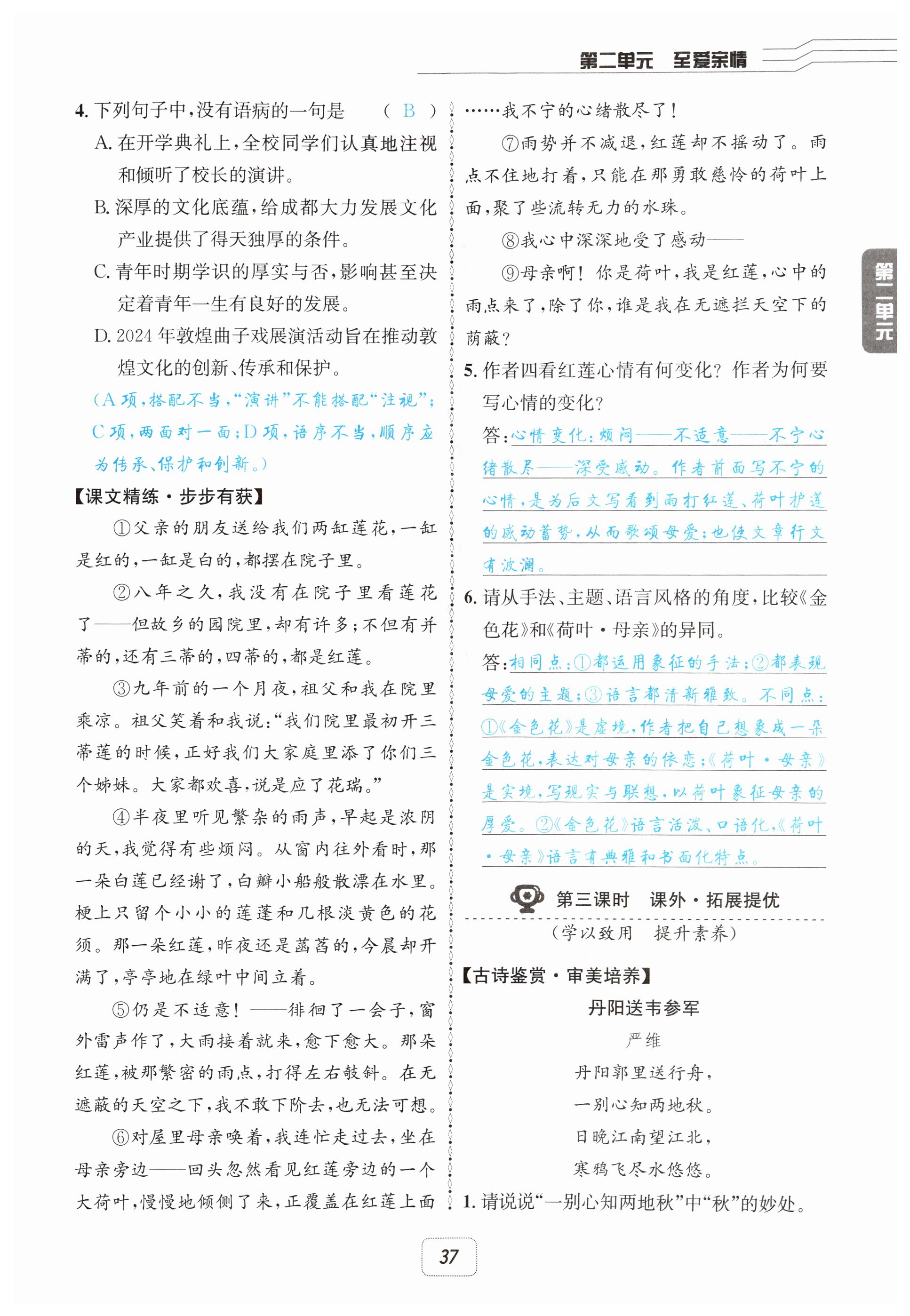 注:目前有些书本章节名称可能整理的还不是很完善,但都是按照顺序排列的,请同学们按照顺序仔细查找。练习册 2025年名校金典课堂七年级语文上册人教版 答案主要是用来给同学们做完题方便对答案用的,请勿直接抄袭。