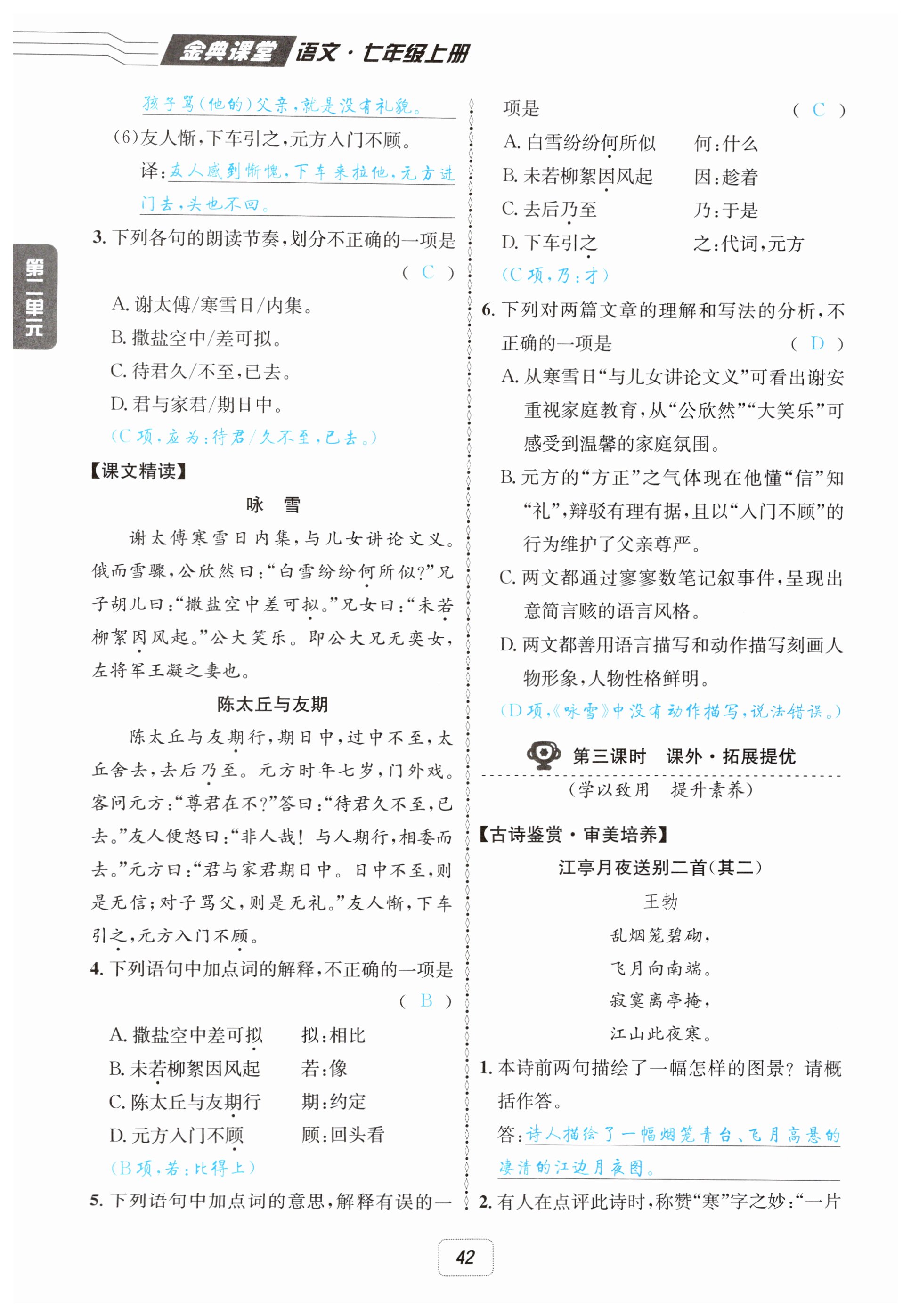注:目前有些书本章节名称可能整理的还不是很完善,但都是按照顺序排列的,请同学们按照顺序仔细查找。练习册 2025年名校金典课堂七年级语文上册人教版 答案主要是用来给同学们做完题方便对答案用的,请勿直接抄袭。