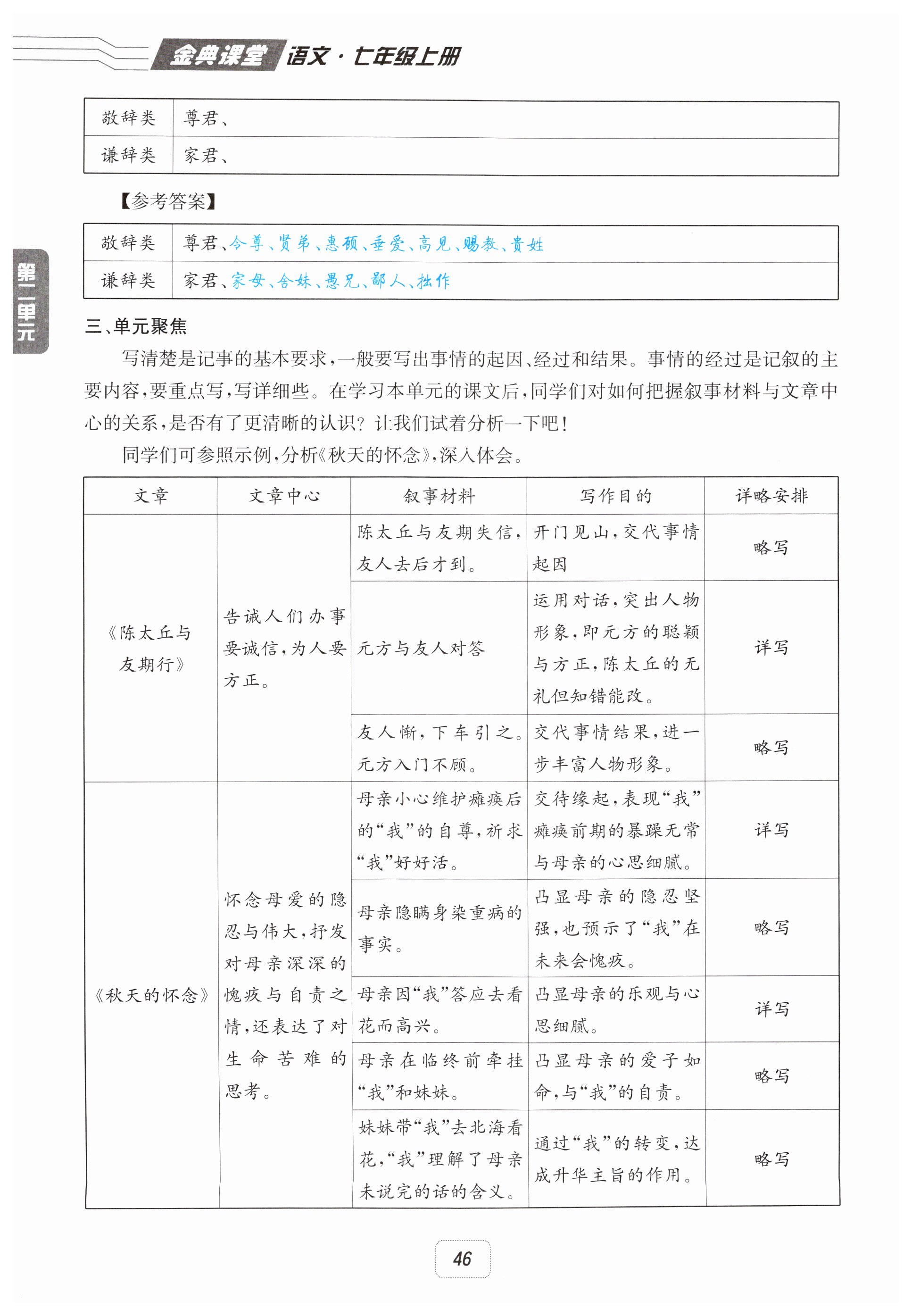 注:目前有些书本章节名称可能整理的还不是很完善,但都是按照顺序排列的,请同学们按照顺序仔细查找。练习册 2025年名校金典课堂七年级语文上册人教版 答案主要是用来给同学们做完题方便对答案用的,请勿直接抄袭。
