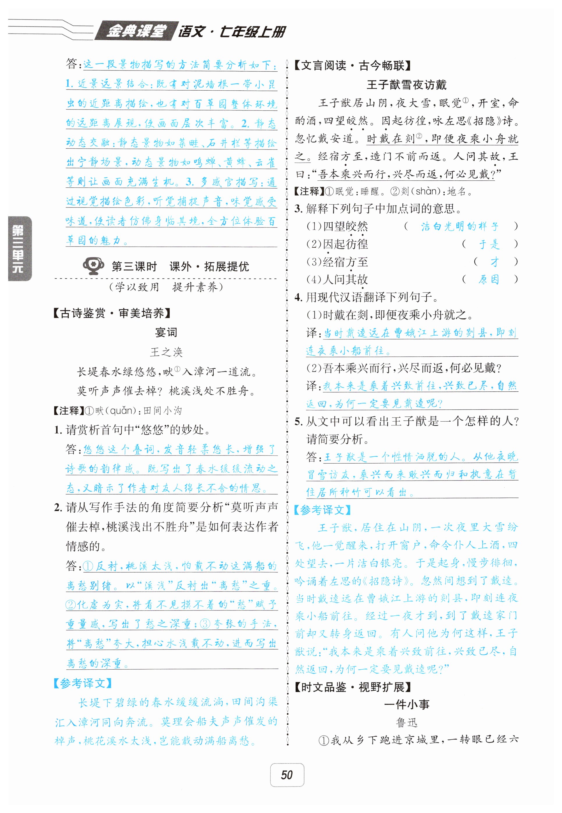 注:目前有些书本章节名称可能整理的还不是很完善,但都是按照顺序排列的,请同学们按照顺序仔细查找。练习册 2025年名校金典课堂七年级语文上册人教版 答案主要是用来给同学们做完题方便对答案用的,请勿直接抄袭。