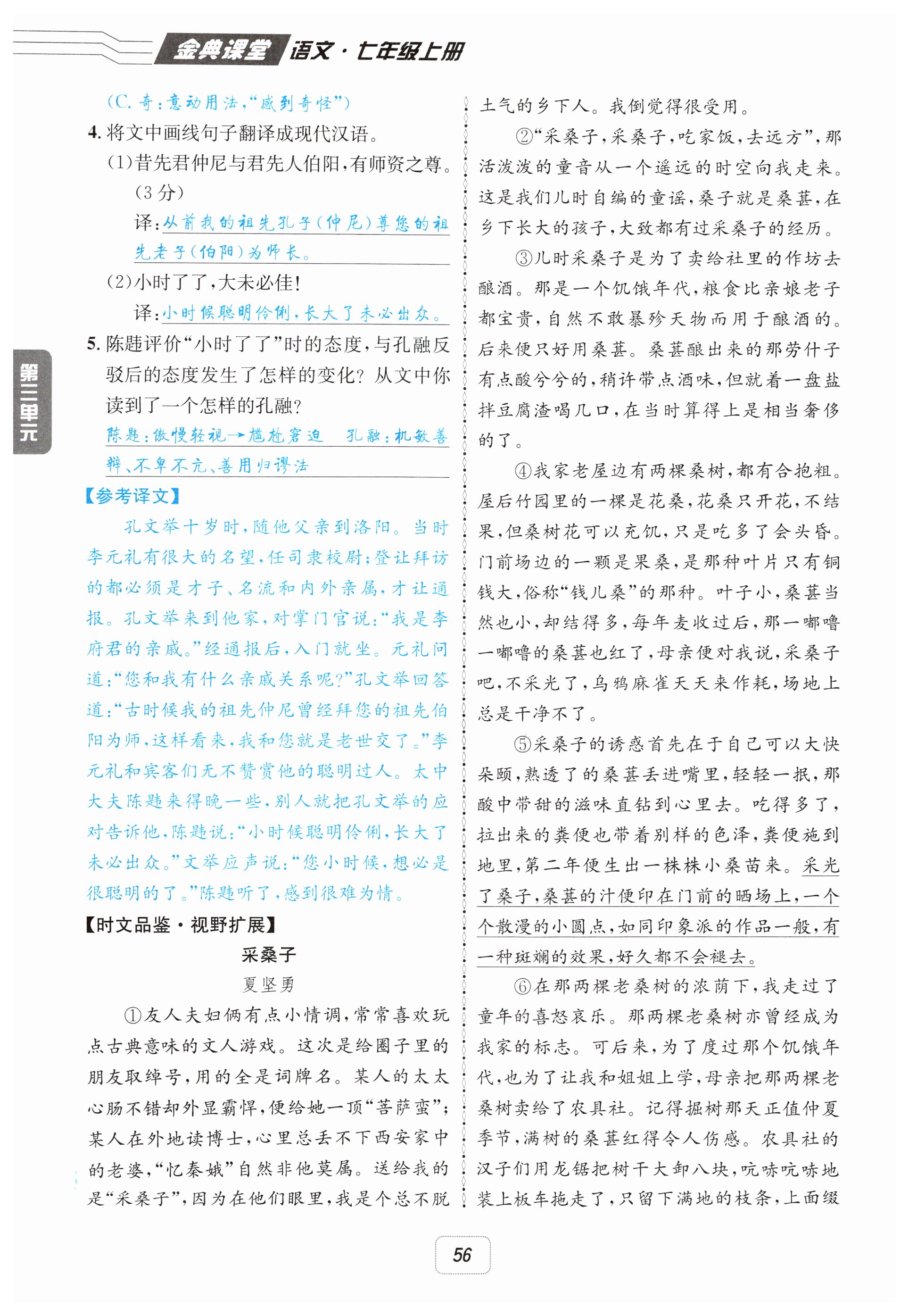 注:目前有些书本章节名称可能整理的还不是很完善,但都是按照顺序排列的,请同学们按照顺序仔细查找。练习册 2025年名校金典课堂七年级语文上册人教版 答案主要是用来给同学们做完题方便对答案用的,请勿直接抄袭。