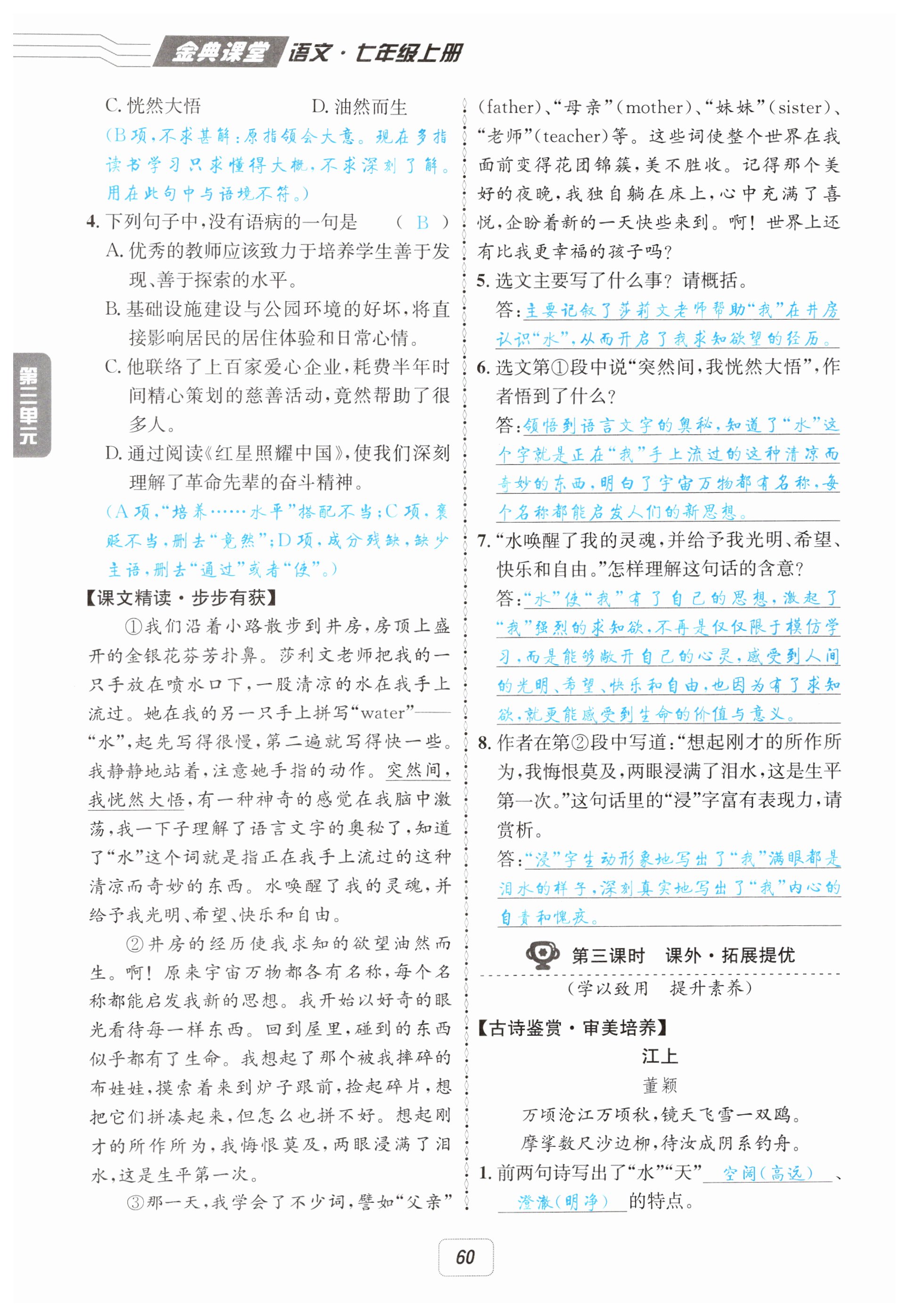 注:目前有些书本章节名称可能整理的还不是很完善,但都是按照顺序排列的,请同学们按照顺序仔细查找。练习册 2025年名校金典课堂七年级语文上册人教版 答案主要是用来给同学们做完题方便对答案用的,请勿直接抄袭。