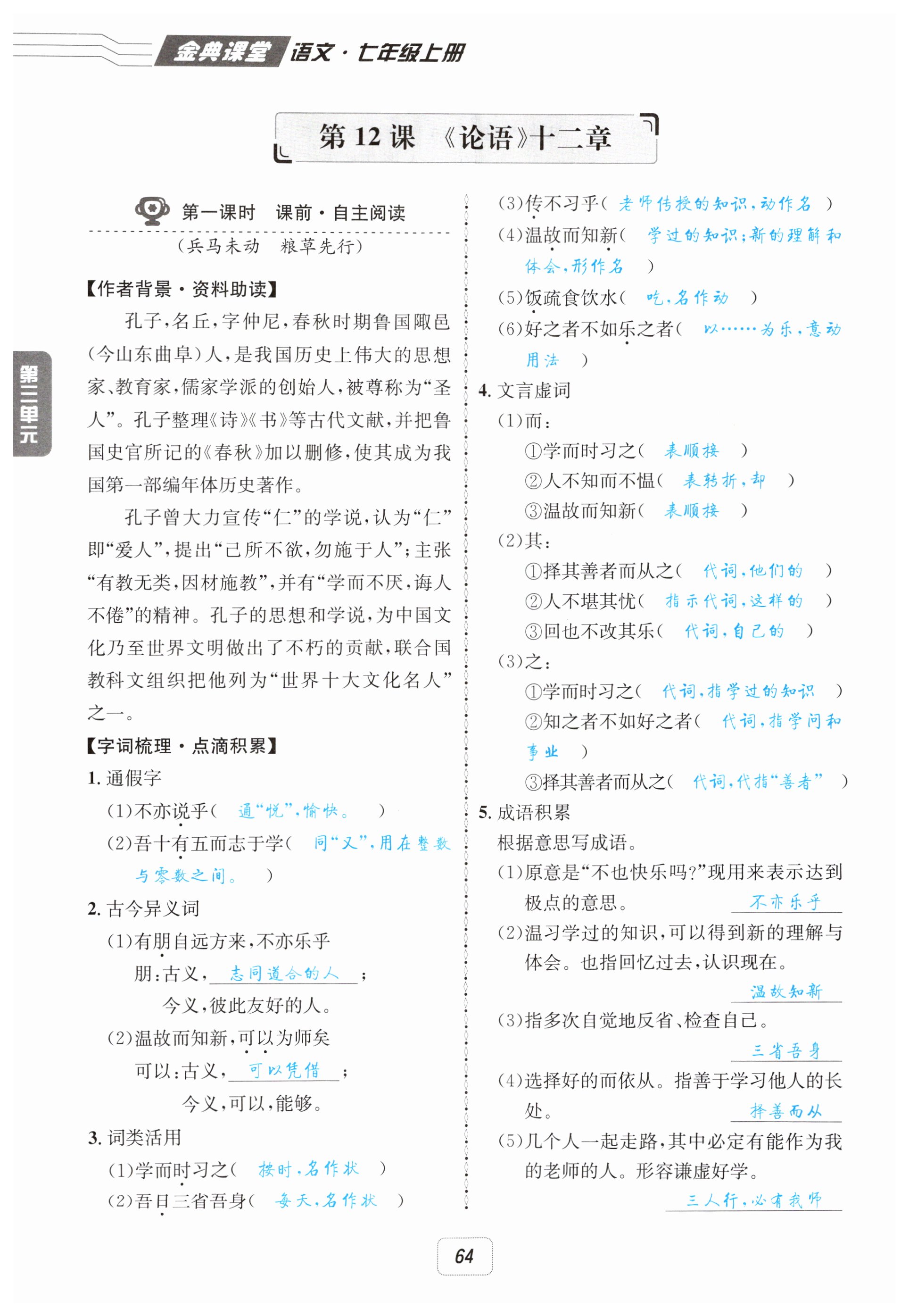 注:目前有些书本章节名称可能整理的还不是很完善,但都是按照顺序排列的,请同学们按照顺序仔细查找。练习册 2025年名校金典课堂七年级语文上册人教版 答案主要是用来给同学们做完题方便对答案用的,请勿直接抄袭。