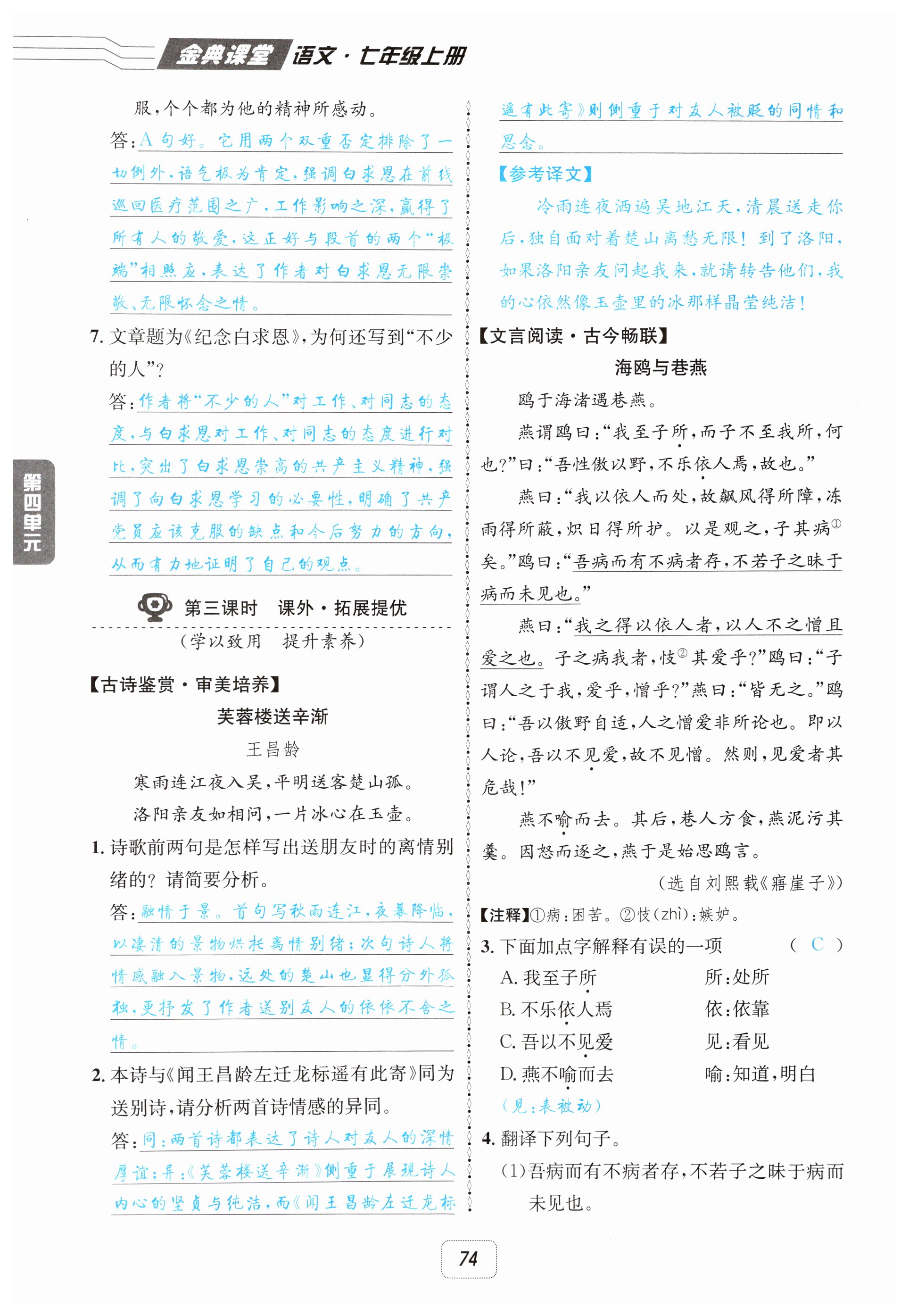 注:目前有些书本章节名称可能整理的还不是很完善,但都是按照顺序排列的,请同学们按照顺序仔细查找。练习册 2025年名校金典课堂七年级语文上册人教版 答案主要是用来给同学们做完题方便对答案用的,请勿直接抄袭。