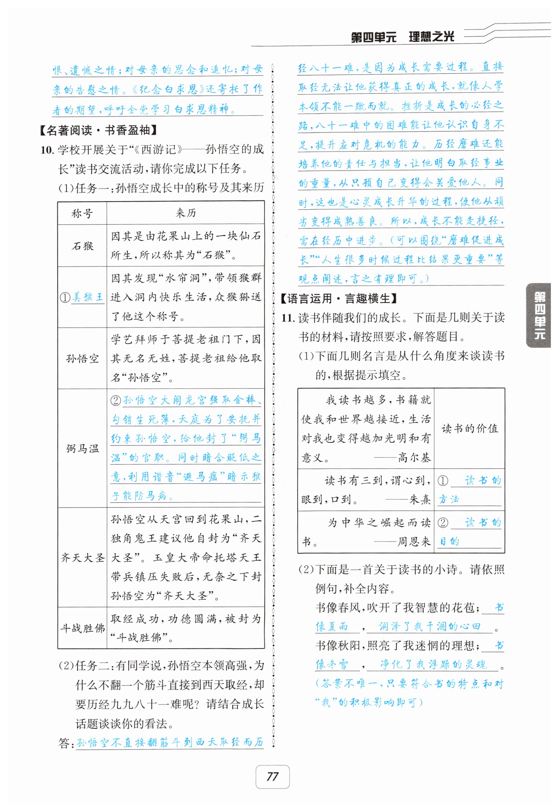 注:目前有些书本章节名称可能整理的还不是很完善,但都是按照顺序排列的,请同学们按照顺序仔细查找。练习册 2025年名校金典课堂七年级语文上册人教版 答案主要是用来给同学们做完题方便对答案用的,请勿直接抄袭。