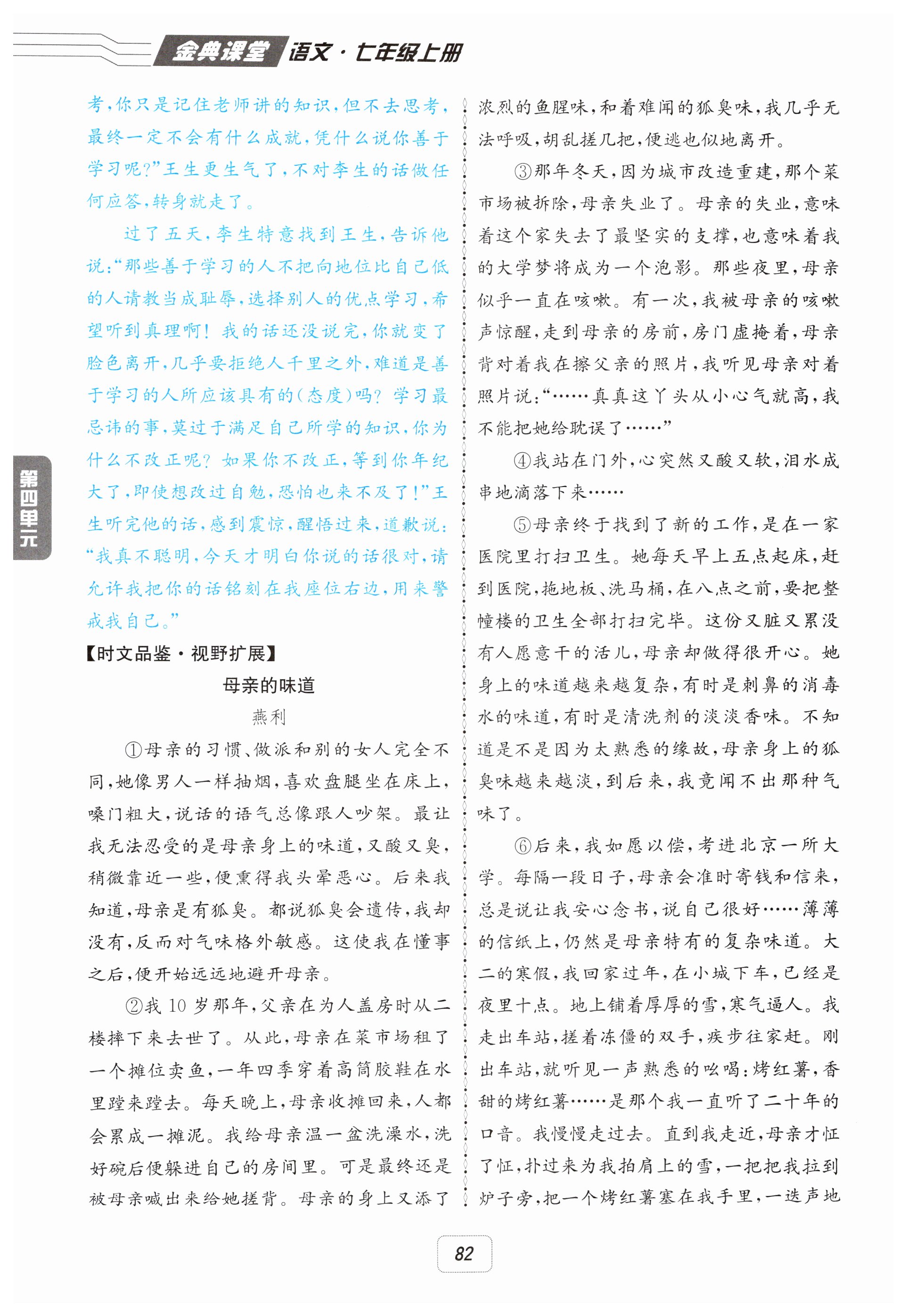 注:目前有些书本章节名称可能整理的还不是很完善,但都是按照顺序排列的,请同学们按照顺序仔细查找。练习册 2025年名校金典课堂七年级语文上册人教版 答案主要是用来给同学们做完题方便对答案用的,请勿直接抄袭。
