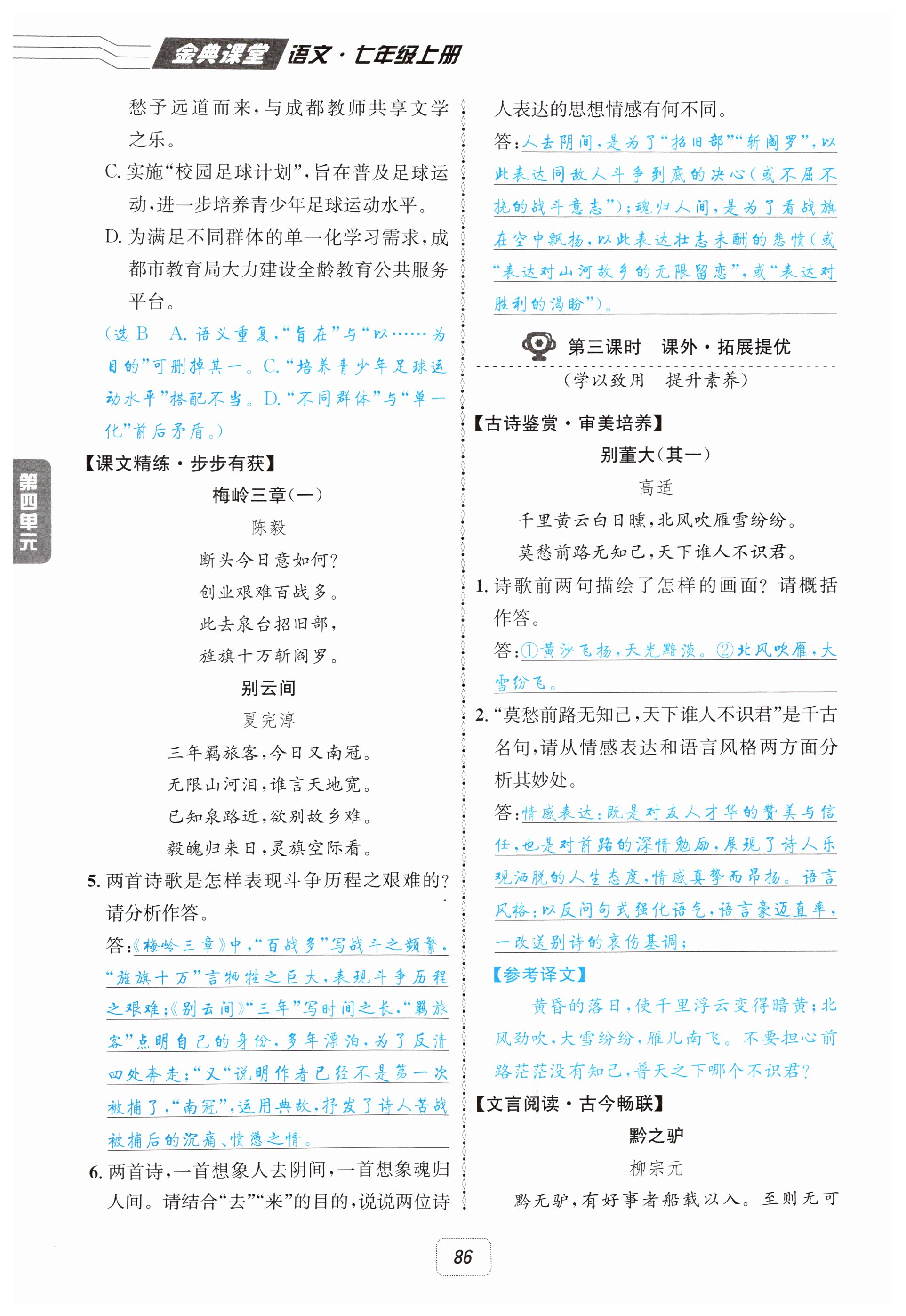 注:目前有些书本章节名称可能整理的还不是很完善,但都是按照顺序排列的,请同学们按照顺序仔细查找。练习册 2025年名校金典课堂七年级语文上册人教版 答案主要是用来给同学们做完题方便对答案用的,请勿直接抄袭。