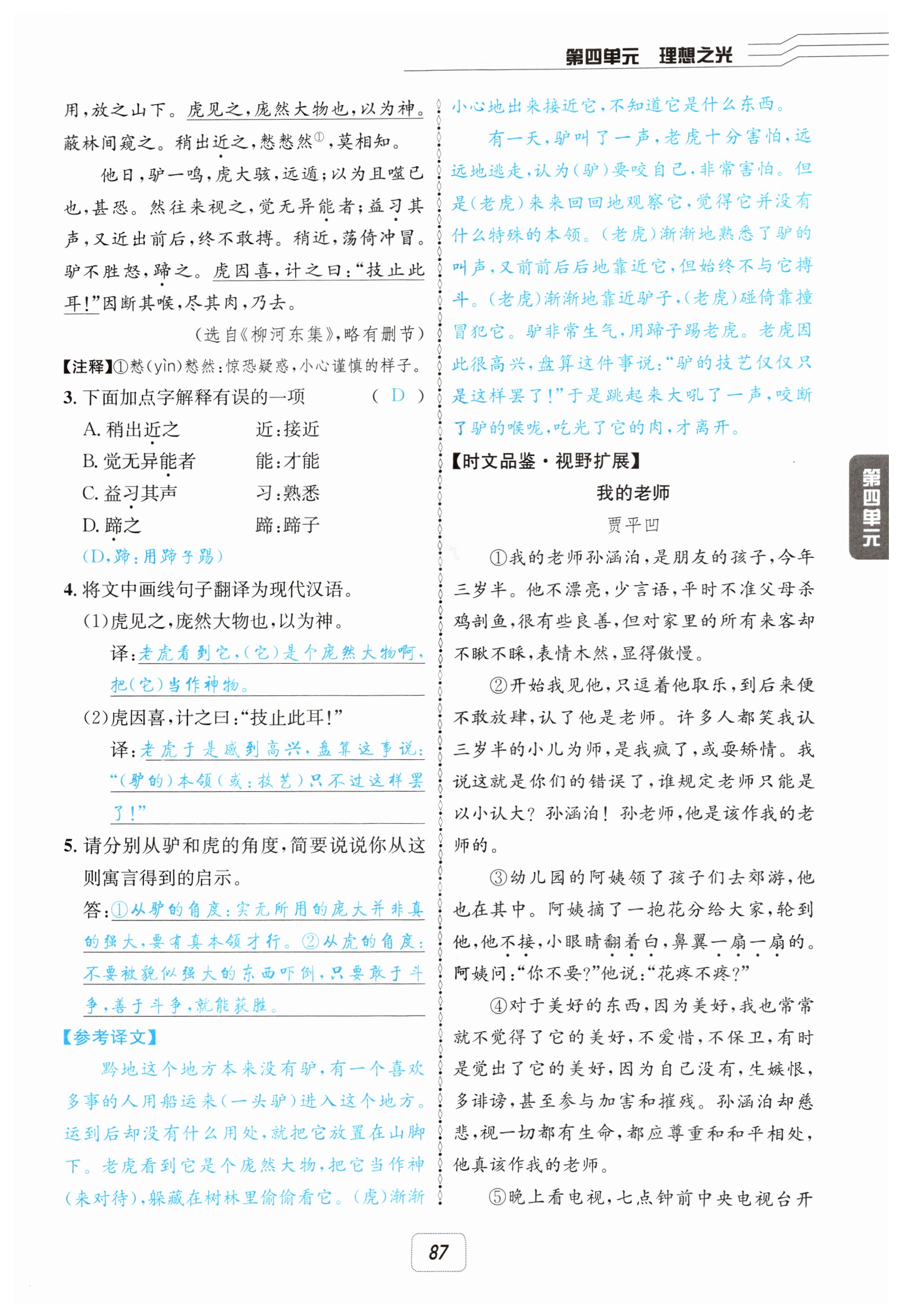 注:目前有些书本章节名称可能整理的还不是很完善,但都是按照顺序排列的,请同学们按照顺序仔细查找。练习册 2025年名校金典课堂七年级语文上册人教版 答案主要是用来给同学们做完题方便对答案用的,请勿直接抄袭。