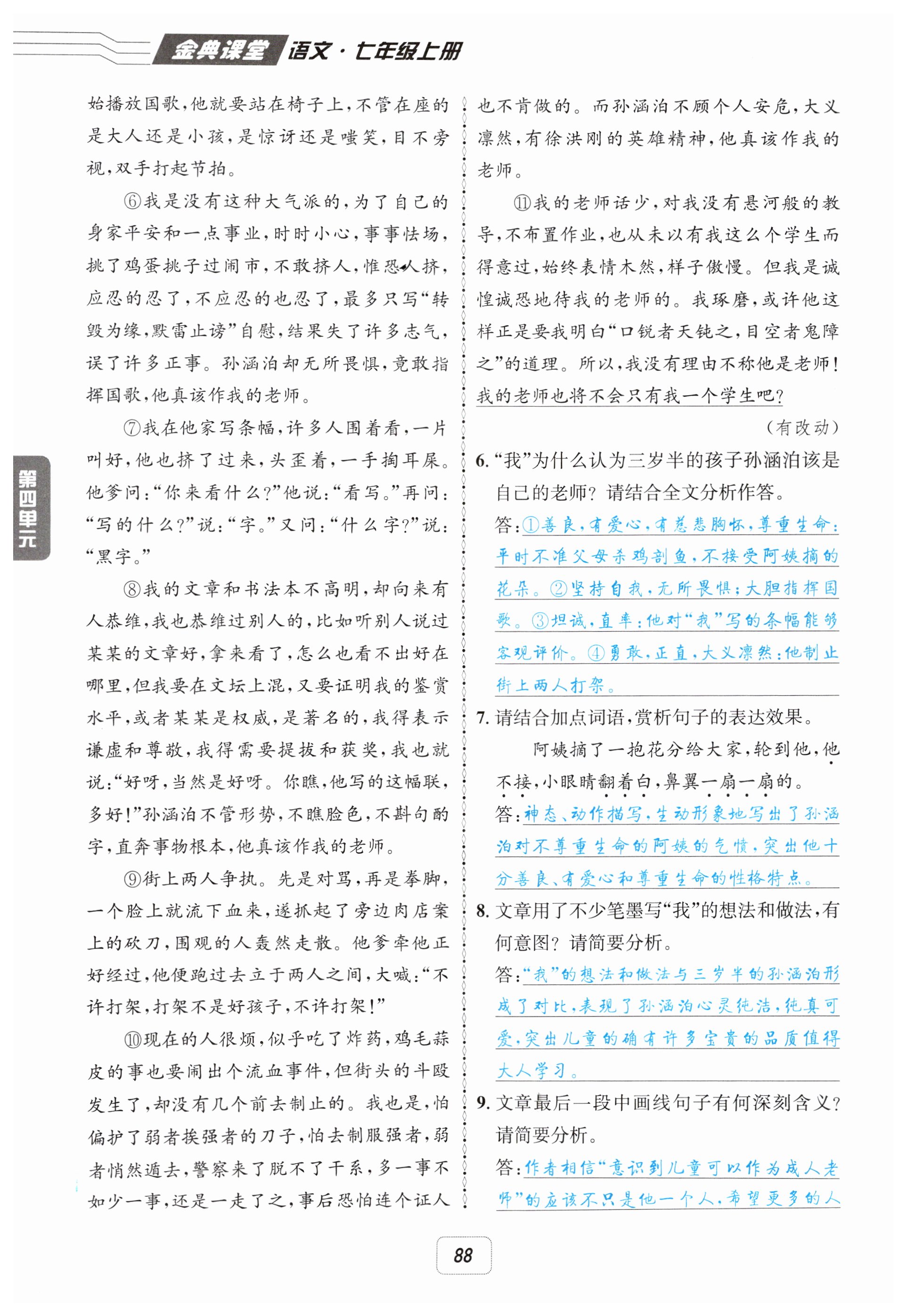 注:目前有些书本章节名称可能整理的还不是很完善,但都是按照顺序排列的,请同学们按照顺序仔细查找。练习册 2025年名校金典课堂七年级语文上册人教版 答案主要是用来给同学们做完题方便对答案用的,请勿直接抄袭。