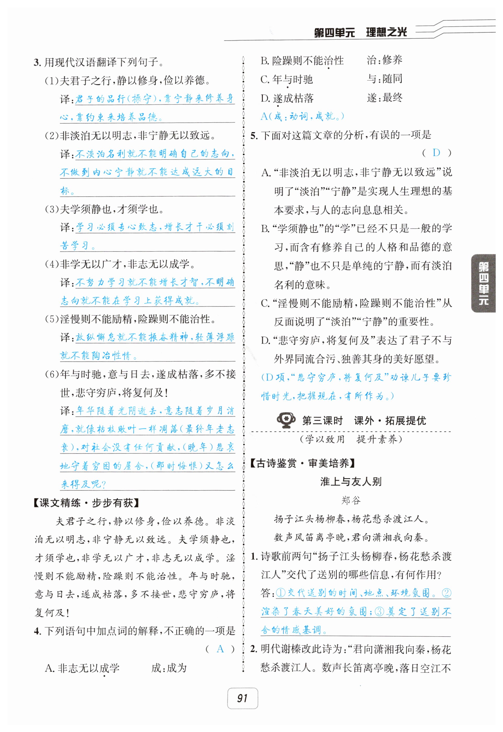 注:目前有些书本章节名称可能整理的还不是很完善,但都是按照顺序排列的,请同学们按照顺序仔细查找。练习册 2025年名校金典课堂七年级语文上册人教版 答案主要是用来给同学们做完题方便对答案用的,请勿直接抄袭。