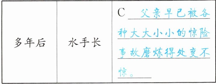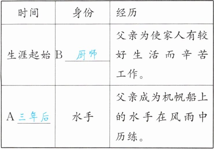 7. 海上生活磨炼了父亲,成就了父亲。结合父亲的海上生活经历,完成下面的表格。