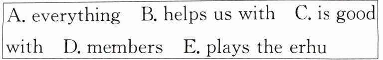 Miss Green is also in our club. She 3. really beautifully. She often 4. erhu.