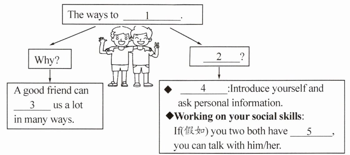 People always have friends. A good friend can help a lot in many ways. But not everyone knows how to make friends. That's OK. There is a skill(技巧) to make friends and we can learn it. Here are some ways for you.
