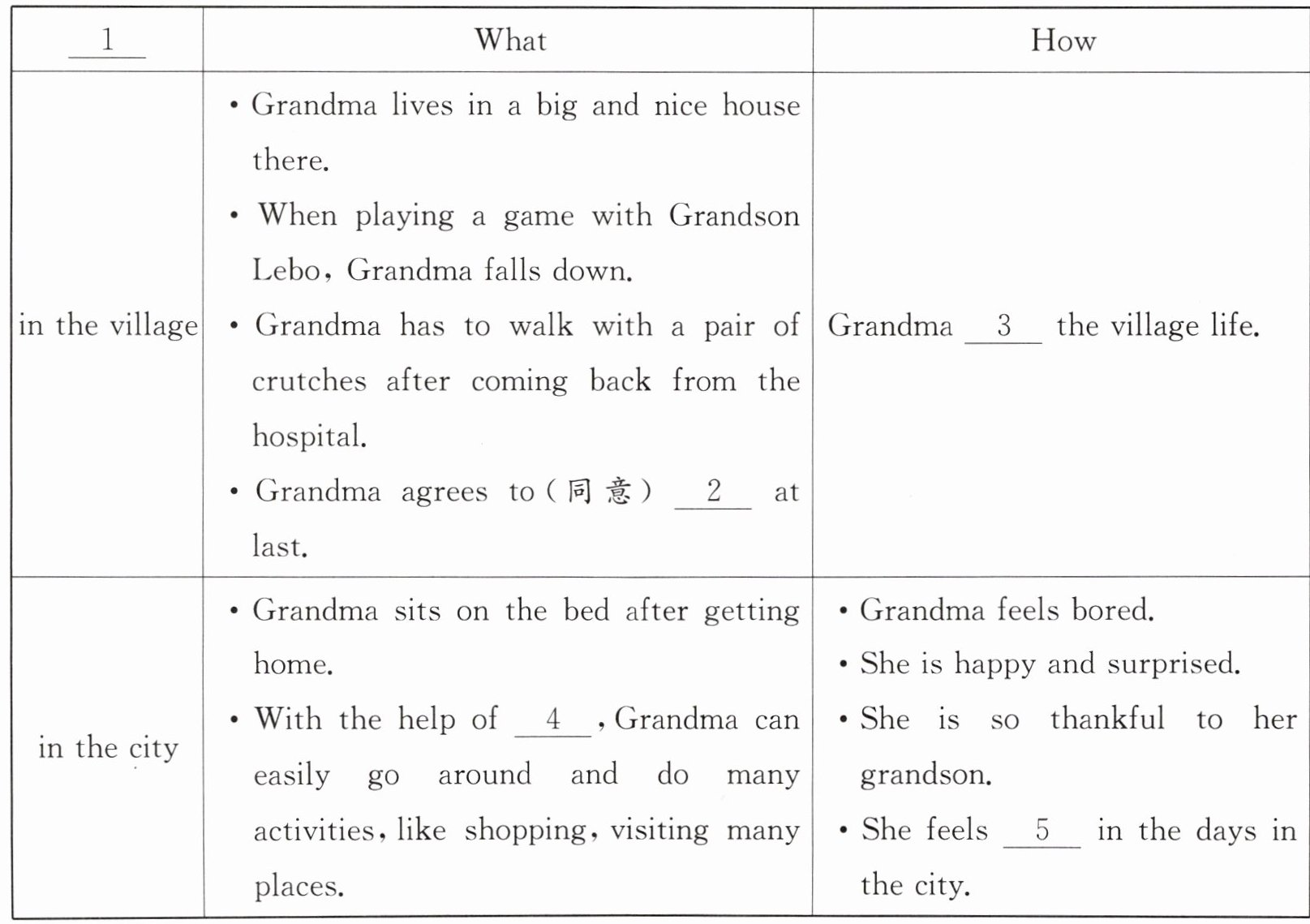 Two hours later, Lebo's mom drives them home. Grandma sits on the bed and she feels bored(无聊的).