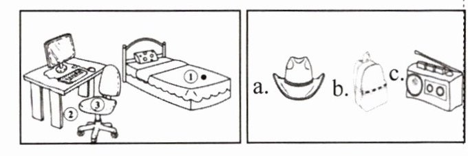 )2. Match(匹配)Bill's things with the places.A. a—①;b—③;c—②