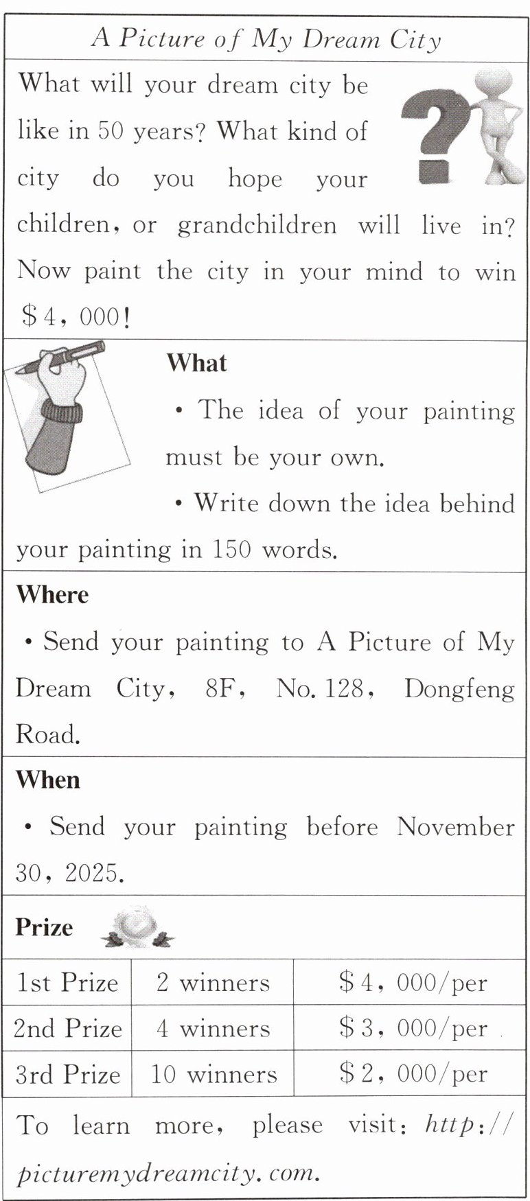 ) 4. How much money will be given(被给与)to all the winners?A. 9,000.