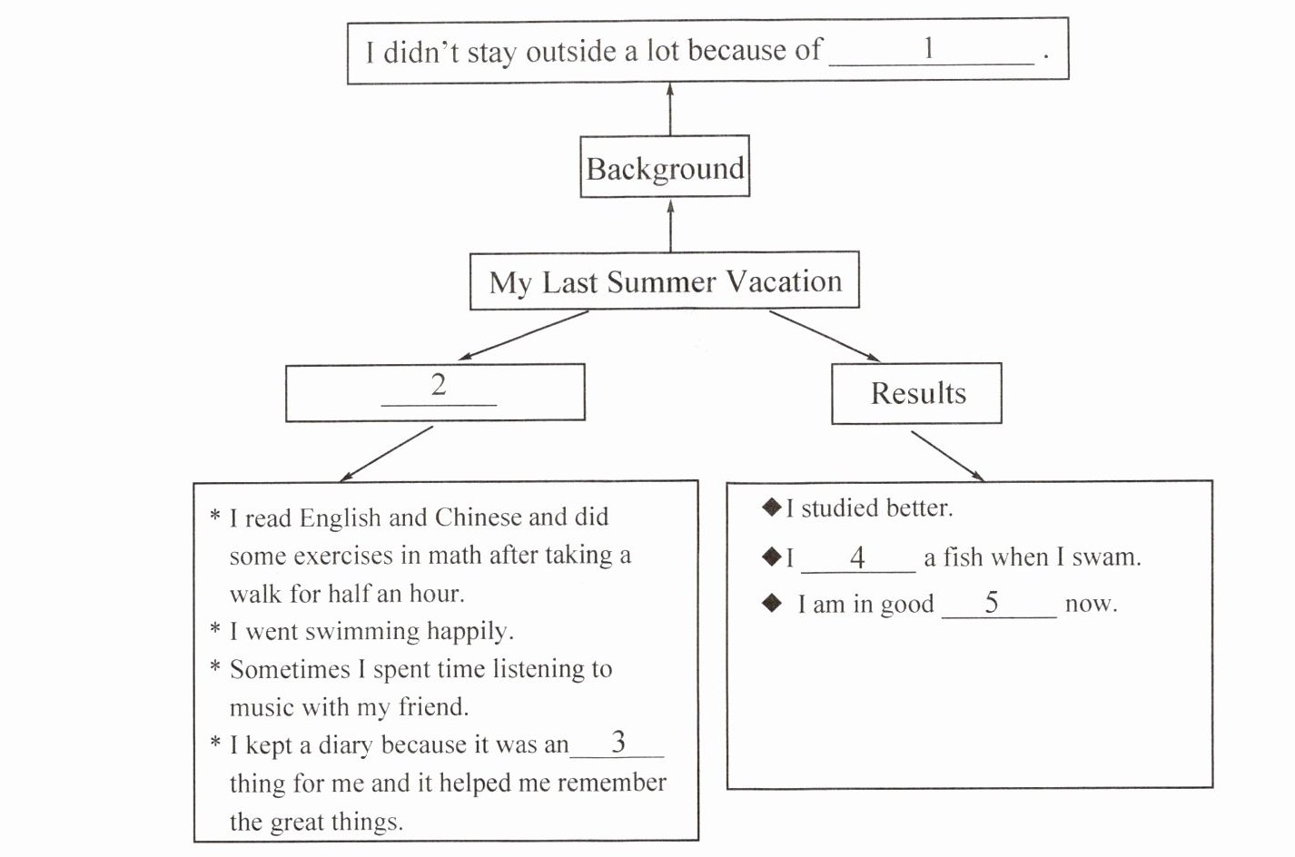 In this way,I spent a happy vacation. And I not only studied well but also was good at swimming like a fish. Now I am really healthy.