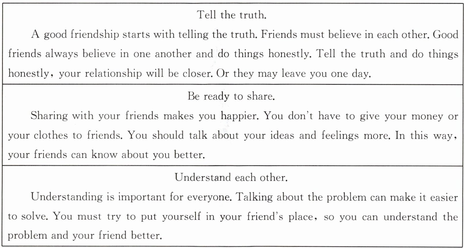 In fact,good friendship does not easily last. Each of you should do something to keep it.
