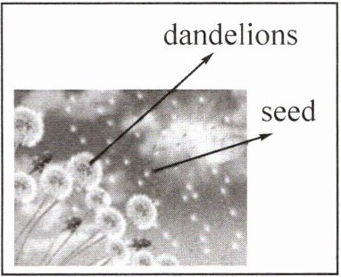3 Dandelions are a good example of this. Dandelion seeds are so light that when wind blows,it carries dandelion seeds to new places. Maple(枫树) seeds also use wind. Their seeds are connected with long,thin leaves that look like wings. When the seed falls from the tree,its “wings” help it fly farther from the tree.