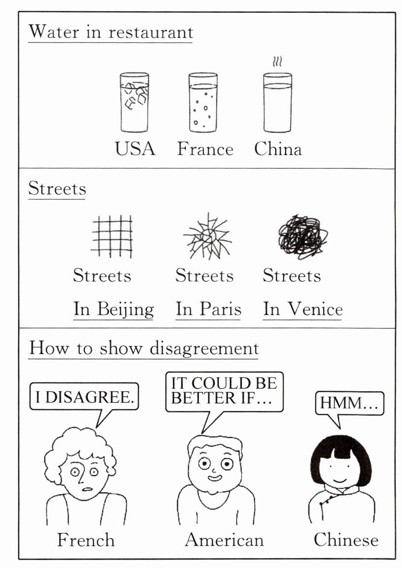 What are the differences between China and the West? You might be able to find the answer in Cao Siyu's comics(漫画). Cao,32,was born in Beijing,but left home at 20 and has studied and lived in the US,the UK and France for 12 years. Having seen so many cultures,Cao wanted to use her drawing skills to show the differences. So she created the cartoon series Tiny Eves Comics. Here are some comics inside the book: