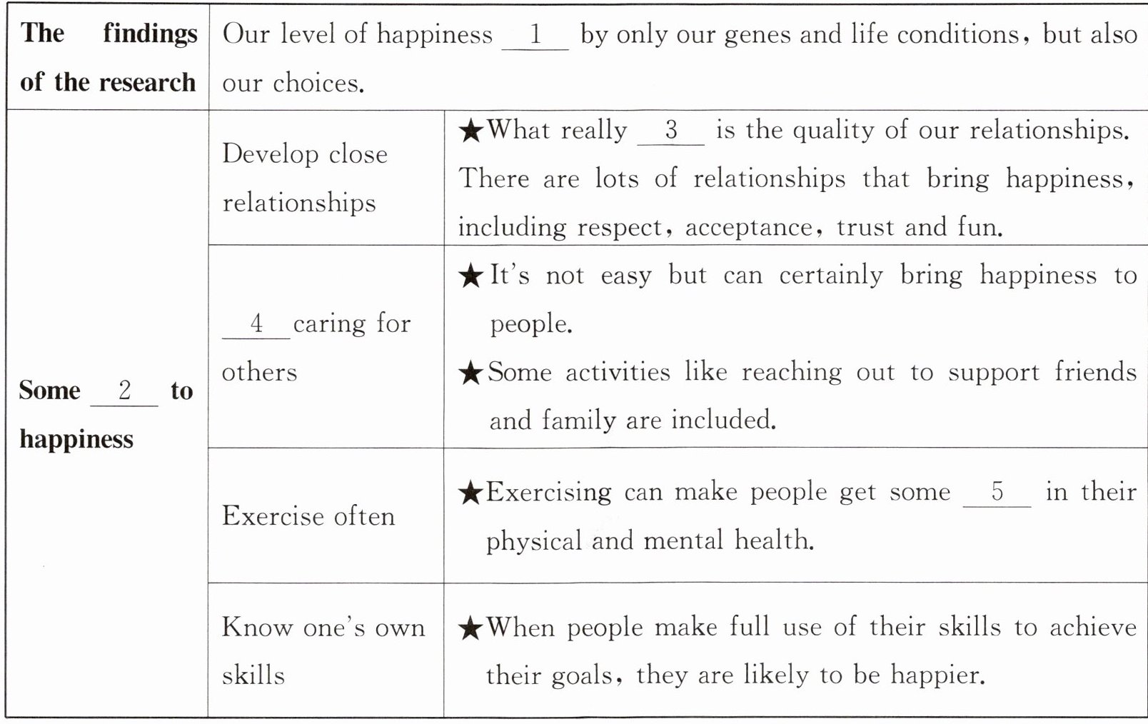 五、完成图表。根据短文内容,完成图表格中所缺信息。