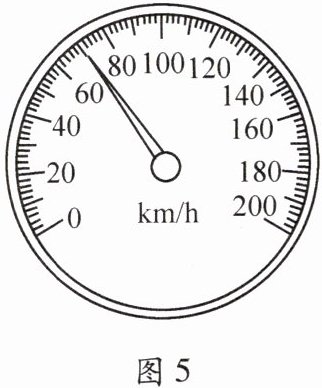 13. 图5所示是汽车上的速度计,一辆汽车若以此速度从满城经安大线驶向雄安,已知满城距雄安70 km,则下列说法正确的是 (
