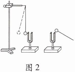 14.图2所示是某实验小组做“探究声音的产生与传播”实验时的情景。实验中,小组同学将两个完全相同的音叉放在水平桌面上,用小槌敲响右边的音叉,左边的音叉也会发声。下列说法正确的是(