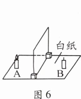 9. 如图6所示,在“探究平面镜成像特点”实验中,若将玻璃板竖直向上提起1 cm,蜡烛的像将竖直向上移动(