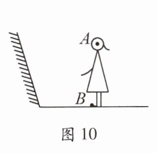 13. 小美去鞋店买鞋,图10所示是她站在镜前试鞋时的情景。请画出小美的眼睛A点看到鞋面B点在平面镜中所成像的完整光路图。