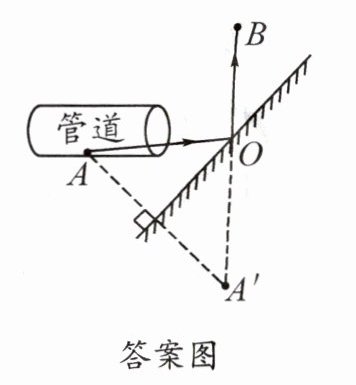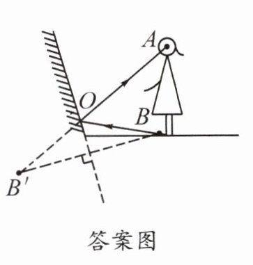 答案图:(画出像A',连接A'B与镜面交于O点,