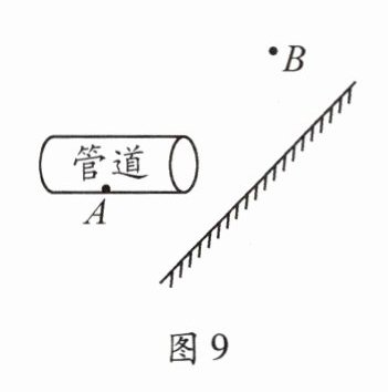 12. (2023·连云港)如图9所示,管道内的A处有一个正在发光的小灯泡,小潘的眼睛在B处看到了平面镜中小灯泡的像,请画出小潘看到小灯泡的像的光路图